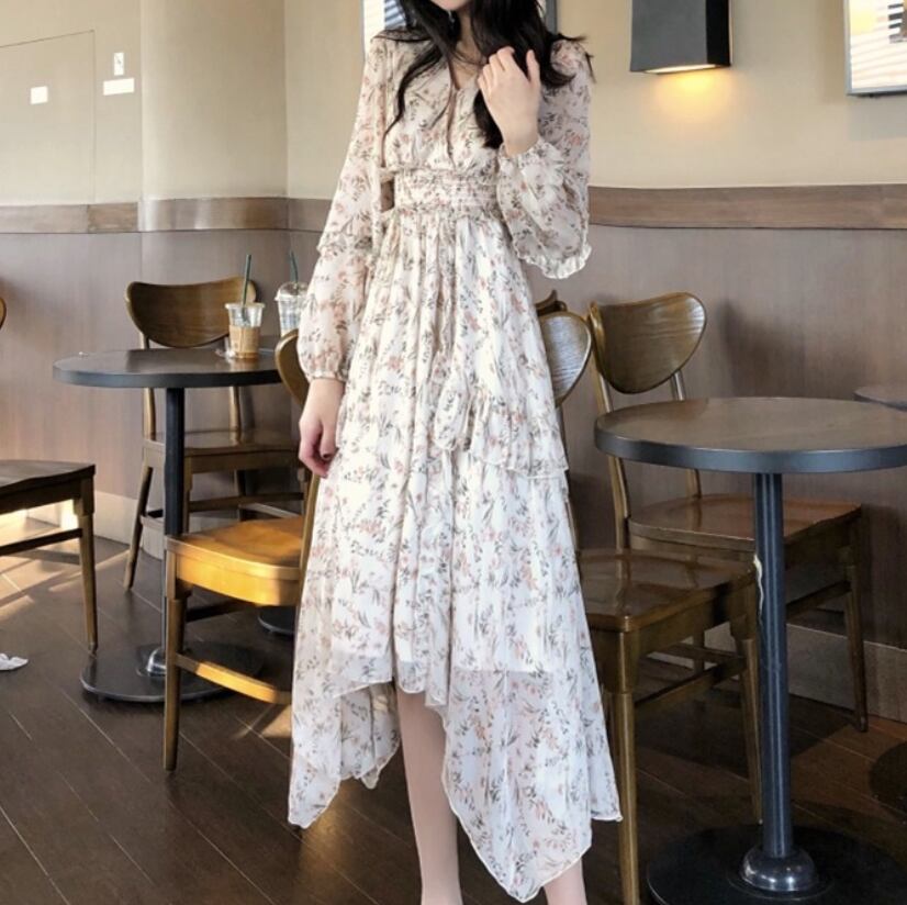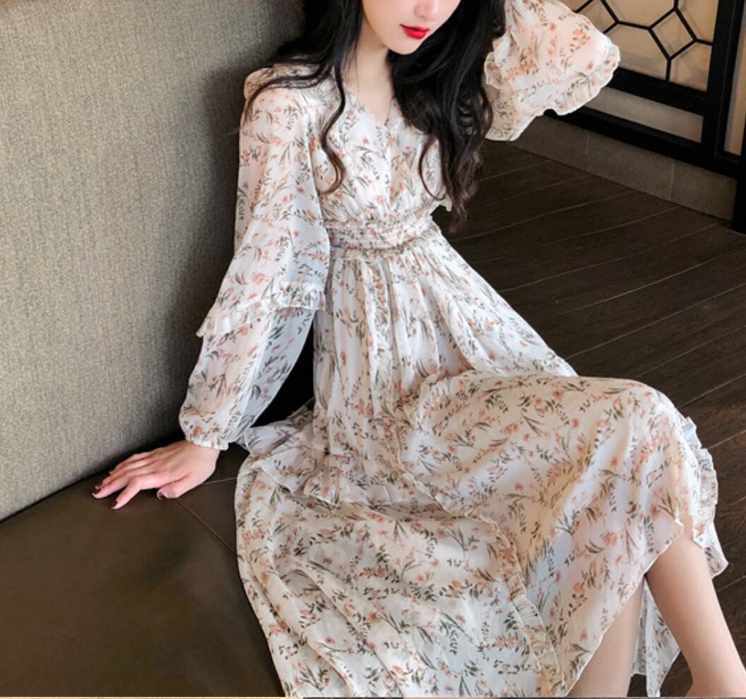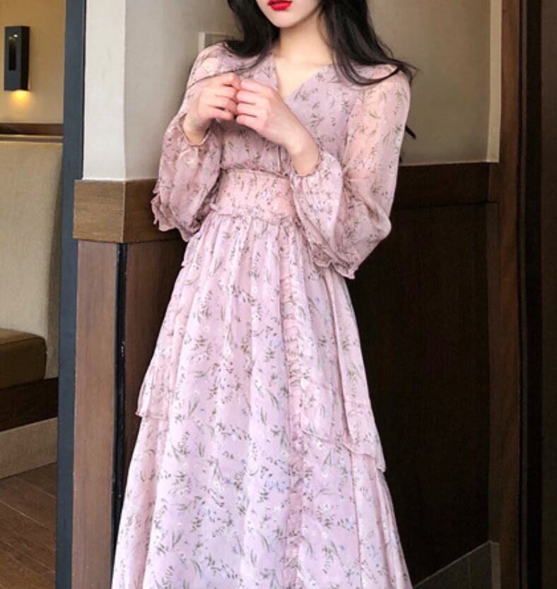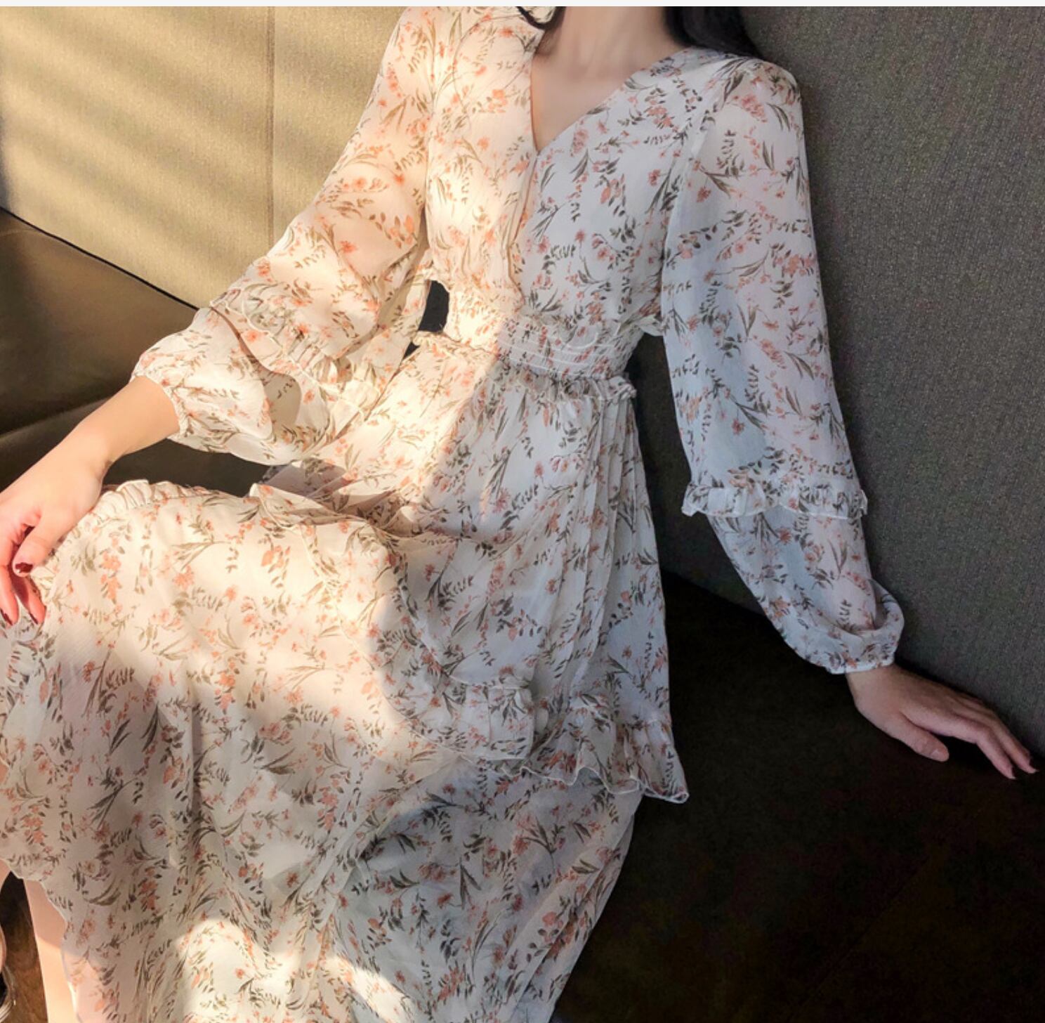 ワンピース 上着 人気 おすすめ おしゃれ お洒落 激安 安い 送料無料 プチプラ 長袖 ロング Vネック ふわふわ パフスリーブ ふんわり 柄 花柄 シフォン 可愛い かわいい 韓国 カジュアル きれいめ 大人 上品 春 スプリング サマー 夏 レディース 女性用 20代 30代 S M L XL 2XL ベージュ オフホワイト 桃色 ピンク パステルカラー くすみカラー 大人カラー 春カラー デート フェミニン