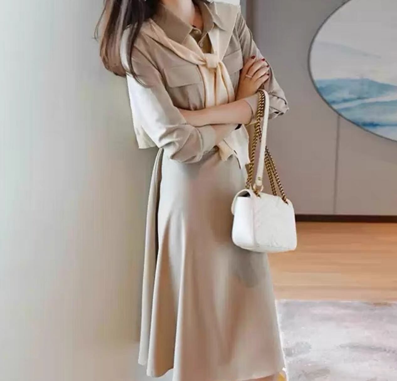ワンピース 上着 人気 おすすめ おしゃれ お洒落 激安 安い 送料無料 プチプラ ブラウス シャツ 長袖 ロング オープンカラー 開襟 Aライン 膝丈 無地 ポリエステル 可愛い かわいい 韓国 シンプル きれいめ 大人 上品 フォーマル 春 スプリング サマー 夏 秋 オータム レディース 女性用 20代 30代 S M L XL 茶色 ブラウン ベージュ オフホワイト くすみカラー 大人カラー モノトーン 秋カラー デート フェミニン