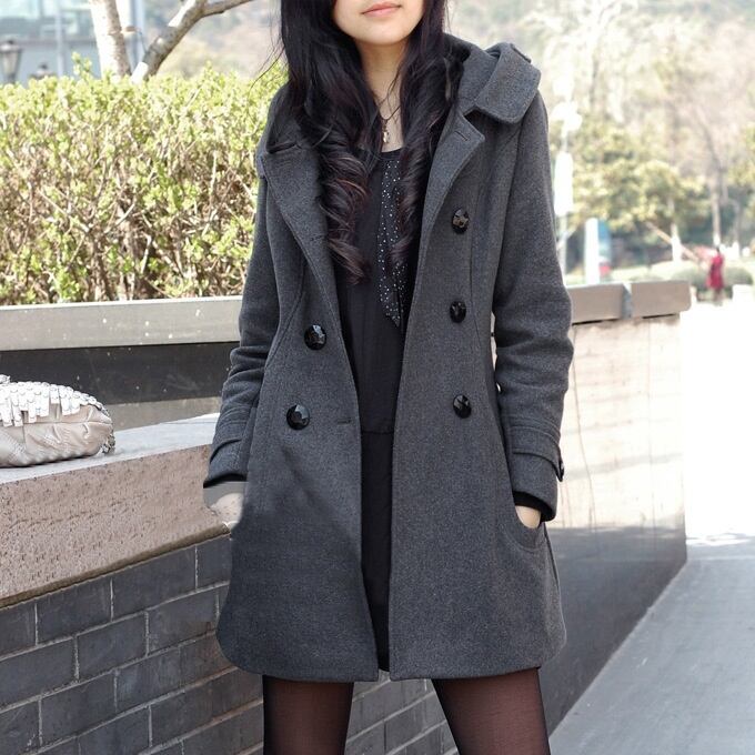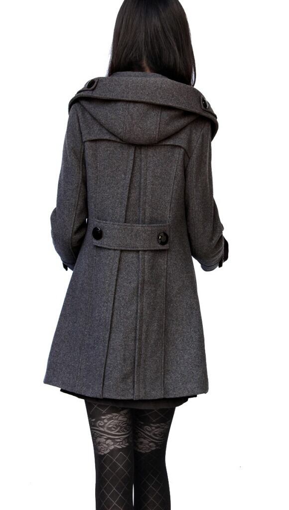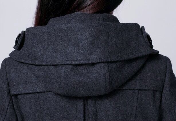 もっちりウールタッチの暖かい仕立てのフード付きコートです。