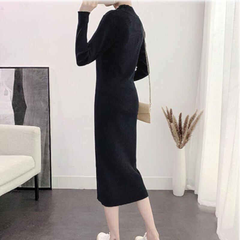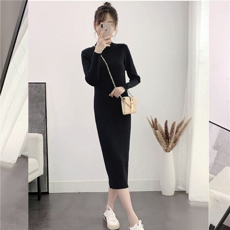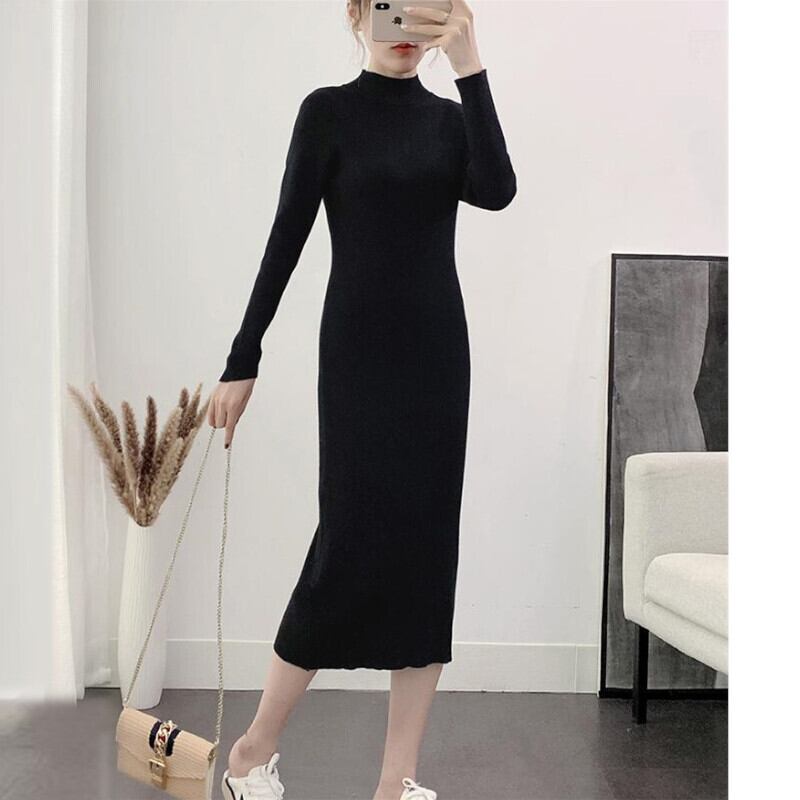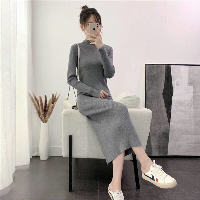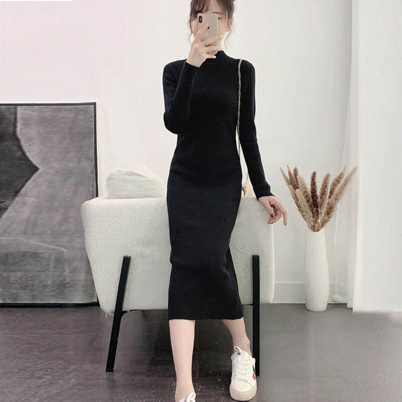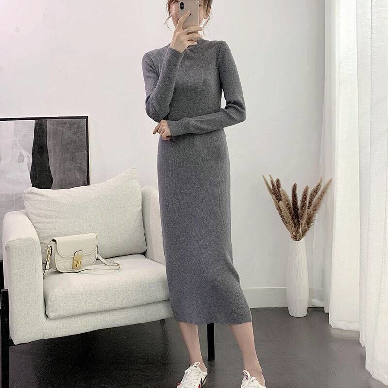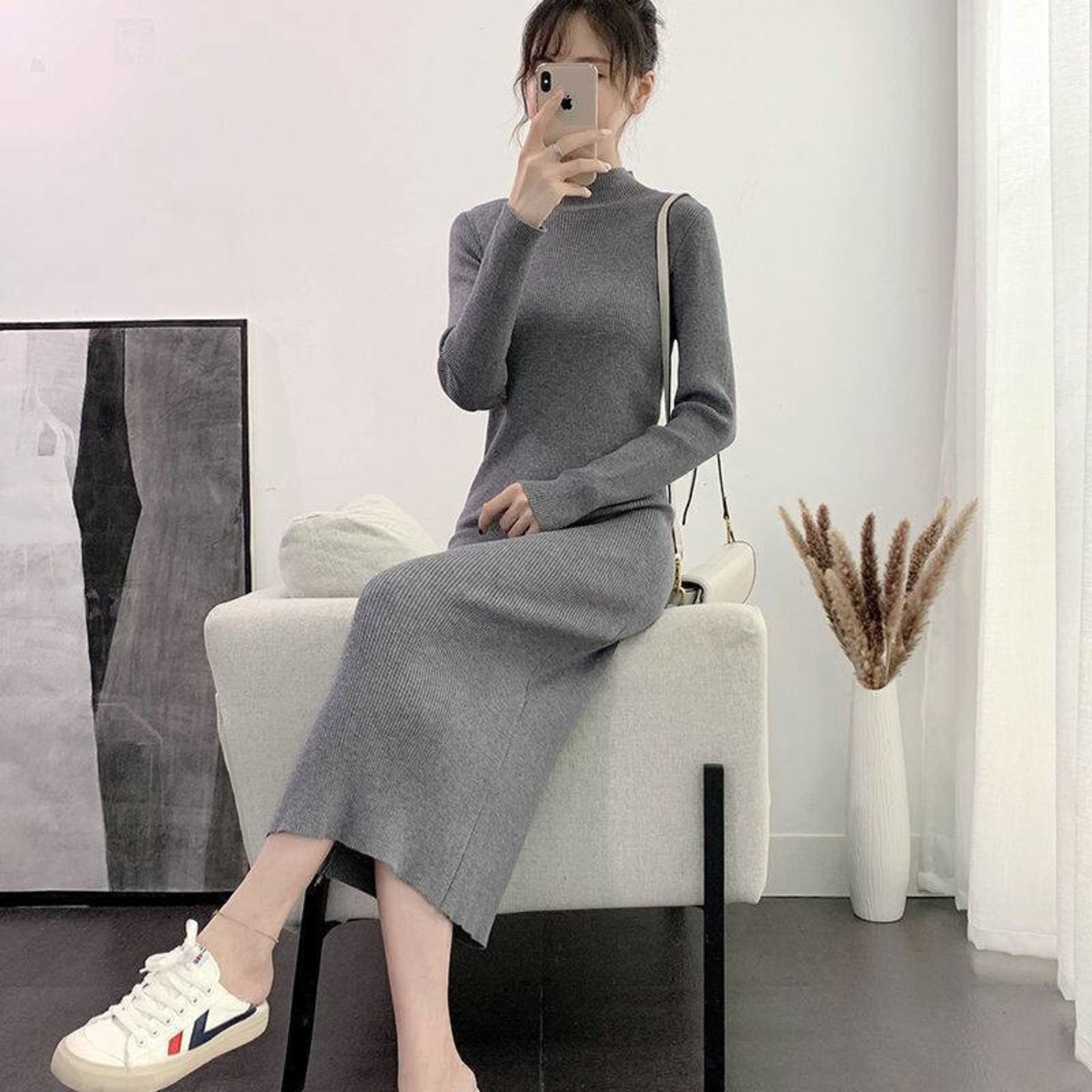 スカート ワンピース ロング丈 袖あり 長袖 ハイネック リブ リブニット かわいい 大人可愛い きれいめ シンプル カジュアル おしゃれ レトロ こなれ感 ラフ 無地 春 秋 10代 20代 30代 40代 レディース デート お出かけ 女子会 休日 リゾート 旅行 着回し 普段使い オルチャン ファッション コーデ スタイル モテ 体型カバー S M L XL ワンサイズ 黒 ブラック グレー