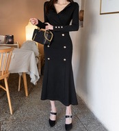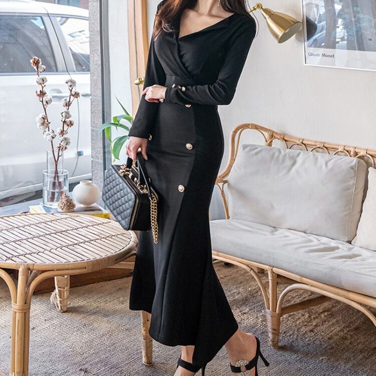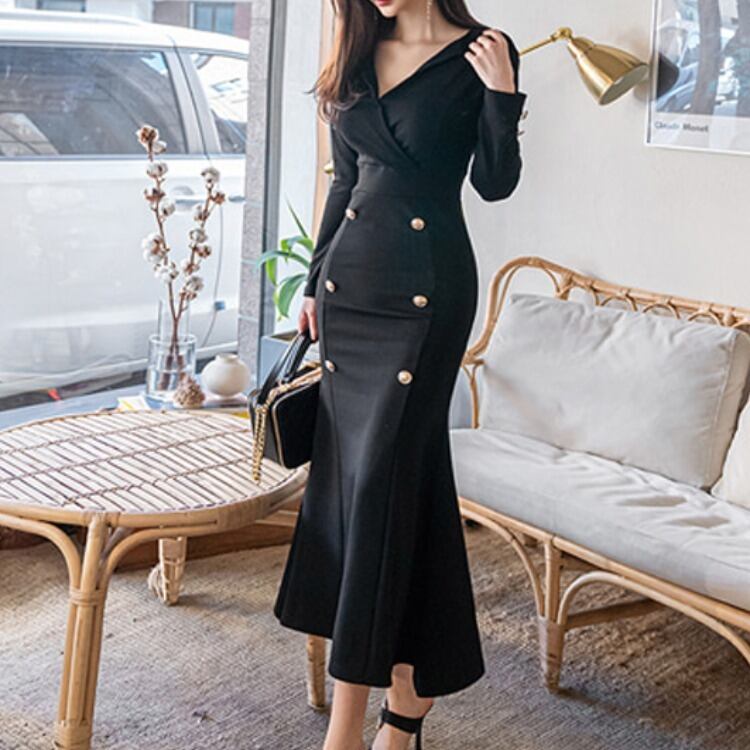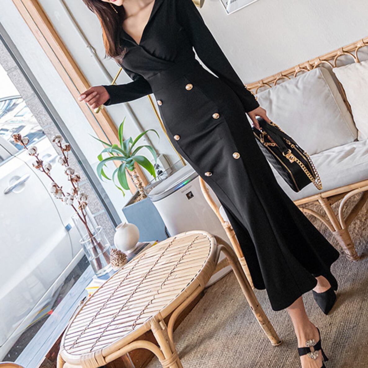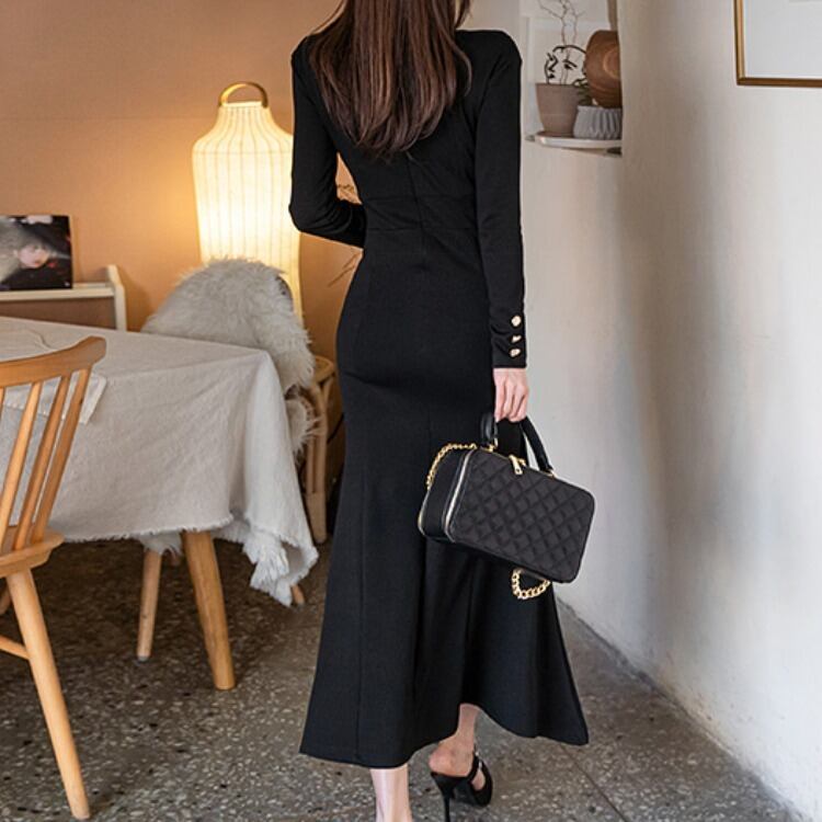 ワンピース 上着 人気 おすすめ おしゃれ お洒落 激安 安い 送料無料 プチプラ 長袖 ロング Vネック マーメイドライン タイト ふんわり 無地 ポリエステル 可愛い かわいい 韓国 きれいめ 高品質 大人 上品 フォーマル 秋 オータム 冬 ウィンター 結婚式 レディース 女性用 20代 30代 S M L 黒 ブラック 大人カラー モノトーン 秋カラー デート フェミニン エレガント シック