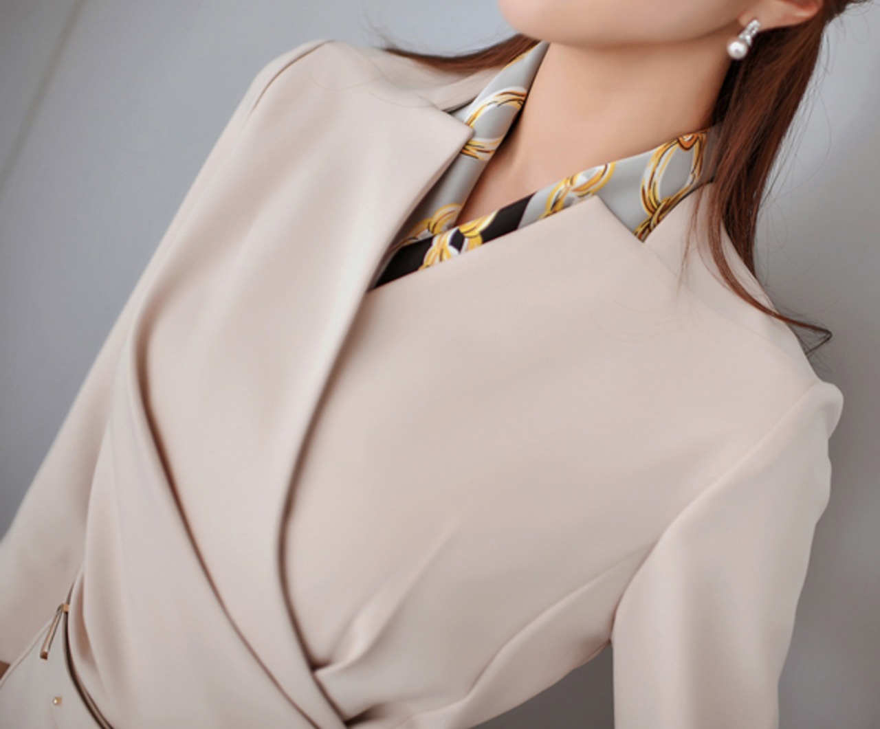 ベルト付きでオフィスコーデやプロフェッショナルなシーンにぴったりな一枚。