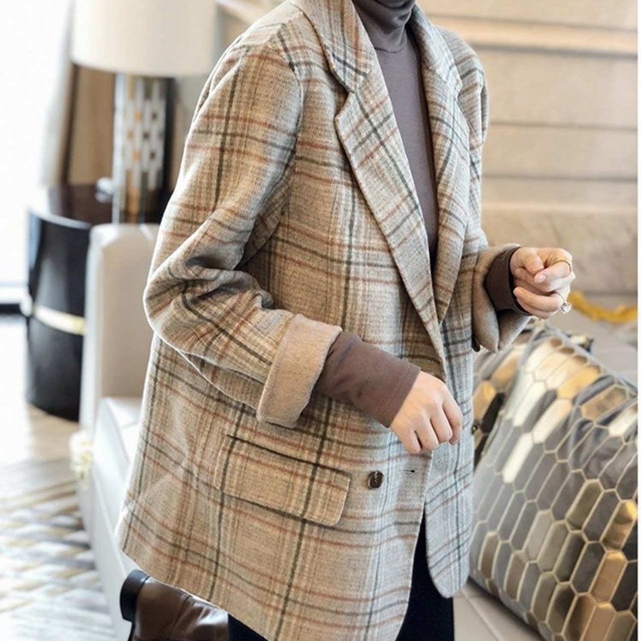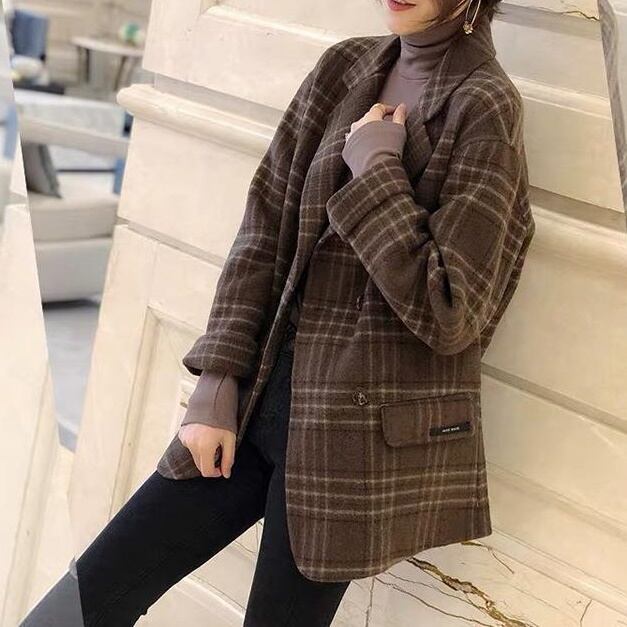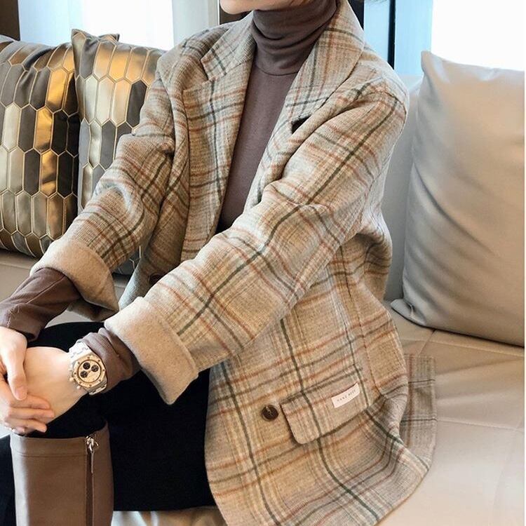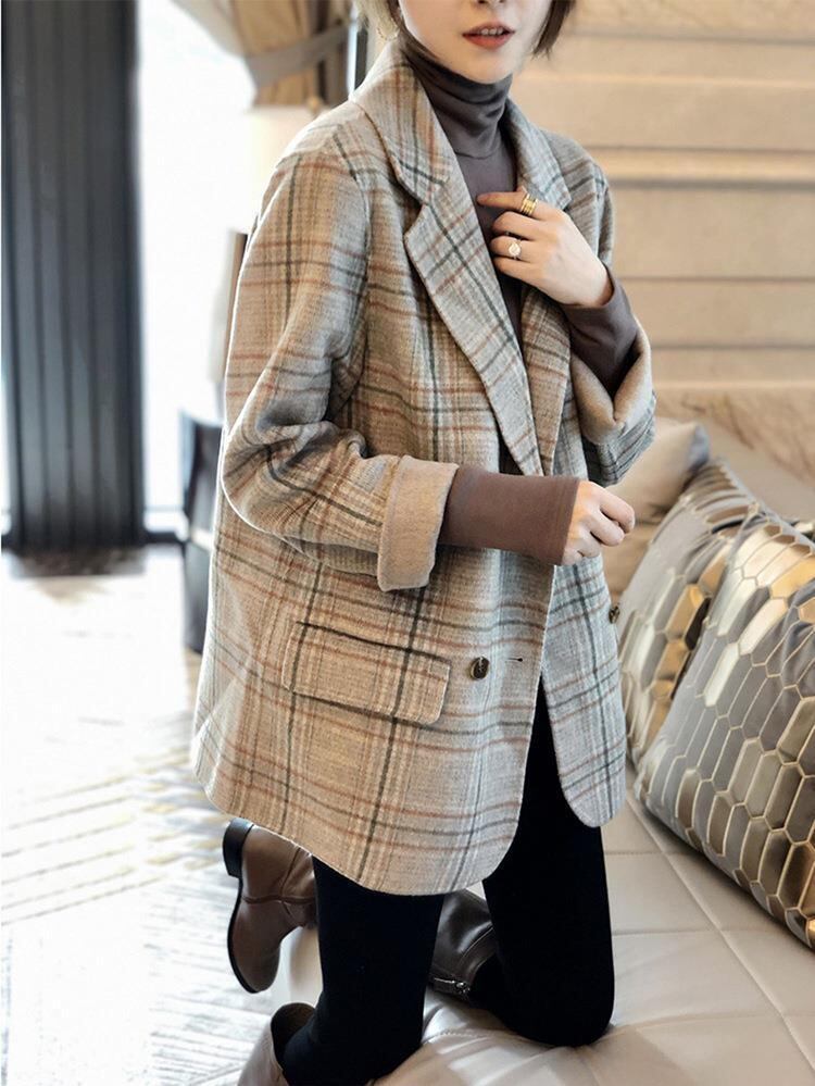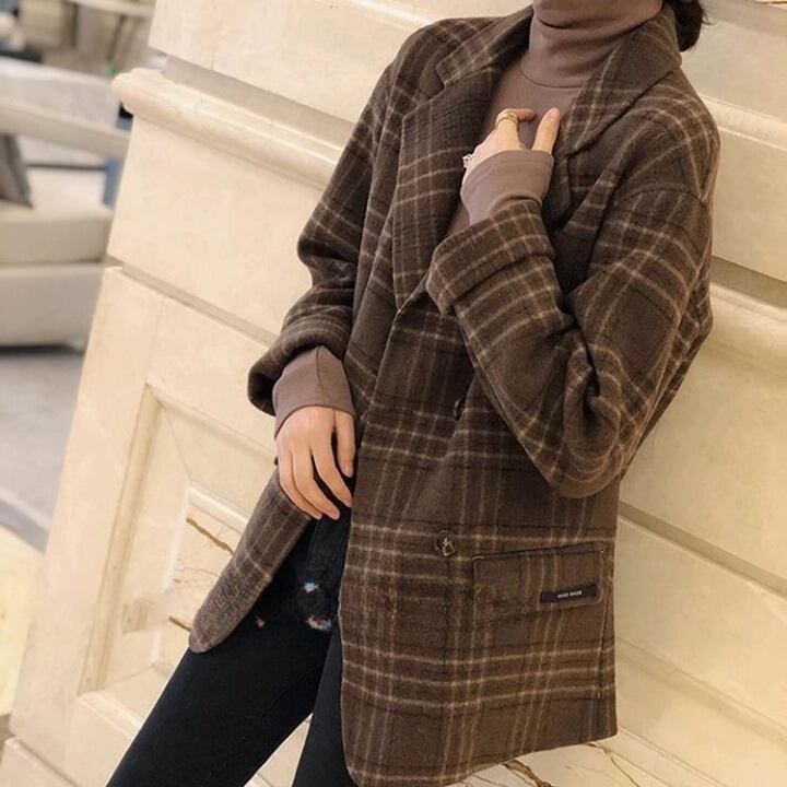 ジャケット レディース テーラードジャケット チェック マニッシュ バイカラー アウター ミディアム丈 オーバーサイズ 韓国風 軽い 軽量 フード付き 冬服 厚手 アウター 暖かい 大きいサイズ スリム 防寒 10代 20代 30代 40代 レディース オフィス OL 通勤 学生 通学 デート お出かけ 女子会 リゾート 旅行 着回し 普段使い 韓国系 オルチャン ファッション コーデ スタイル モテ 体型カバー カーキ ブラック アプリコット