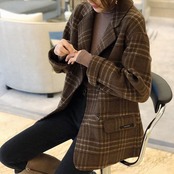大きめのチェックパターンがクラシカルなテーラードジャケットです。