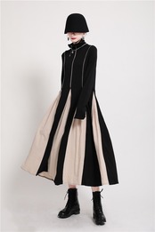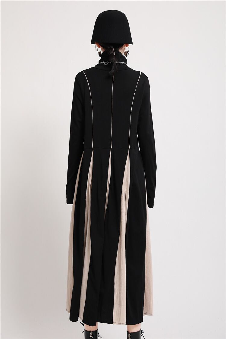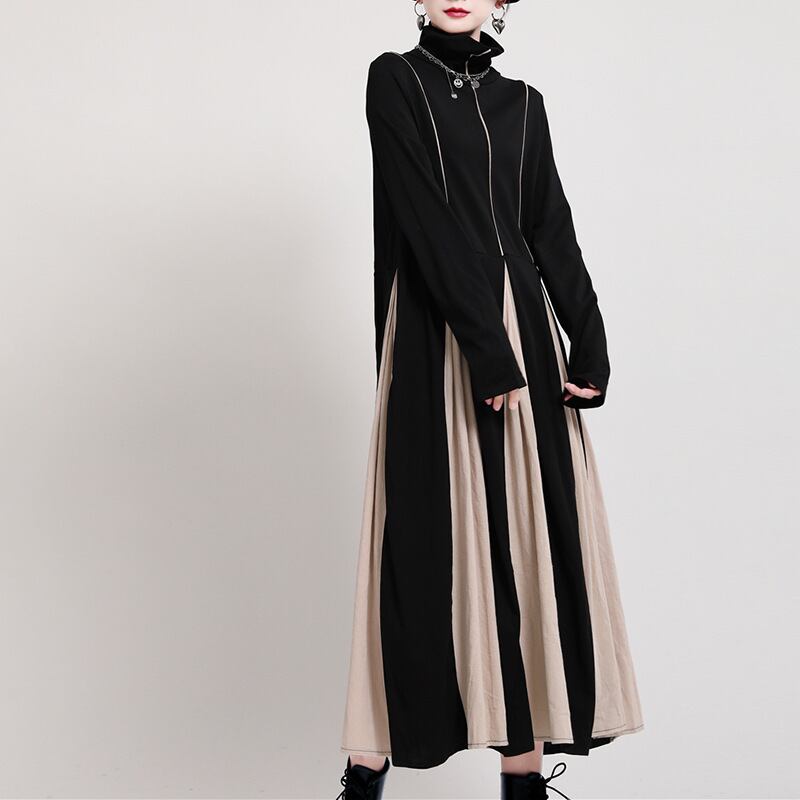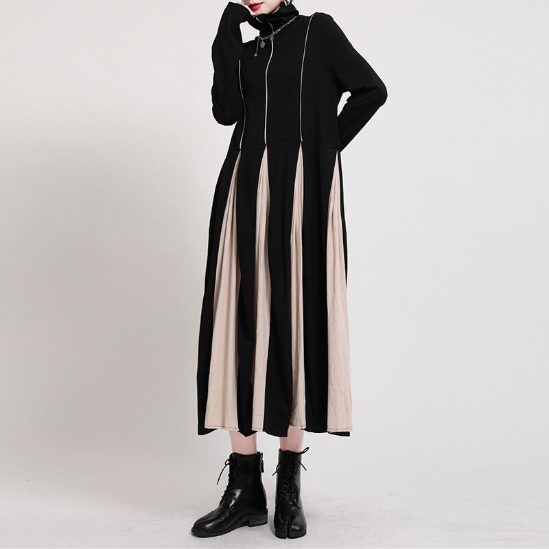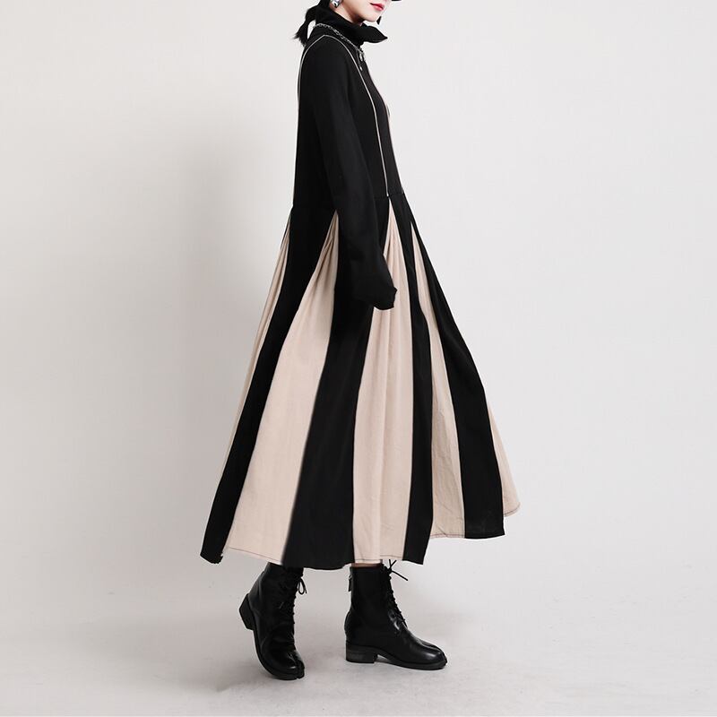 ワンピース 上着 人気 おすすめ おしゃれ お洒落 激安 安い 送料無料 プチプラ 長袖 ロング ハイネック ふんわり Aライン 柄 ストライプ コットン 綿 可愛い かわいい 韓国 シンプル きれいめ 秋 オータム 冬 ウィンター レディース 女性用 20代 30代 フリーサイズ 大きめ ビッグサイズ ゆったり 黒 ブラック ベージュ オフホワイト 大人カラー バイカラー モノトーン 秋カラー