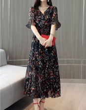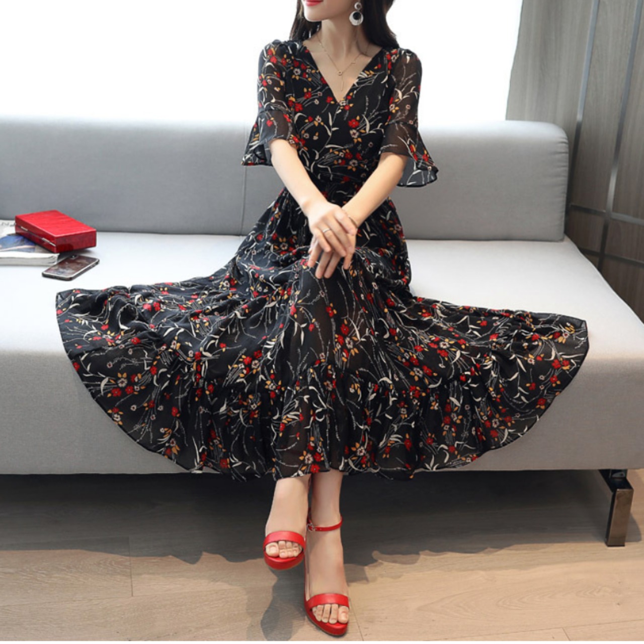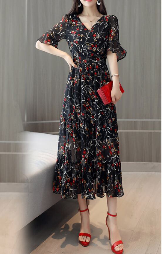 ワンピース 上着 人気 おすすめ おしゃれ お洒落 激安 安い 送料無料 プチプラ シースルー 半袖 Vネック ふわふわ ふんわり Aライン 膝丈 柄 プリント 花柄 シフォン 可愛い かわいい 韓国 シンプル カジュアル きれいめ 大人 上品 春 スプリング サマー 夏 秋 オータム レディース 女性用 20代 30代 M L XL 2XL 黒 ブラック 大人カラー モノトーン 春カラー 秋カラー デート フェミニン