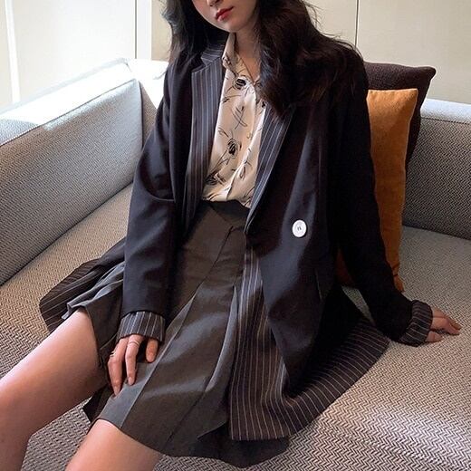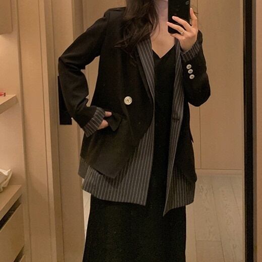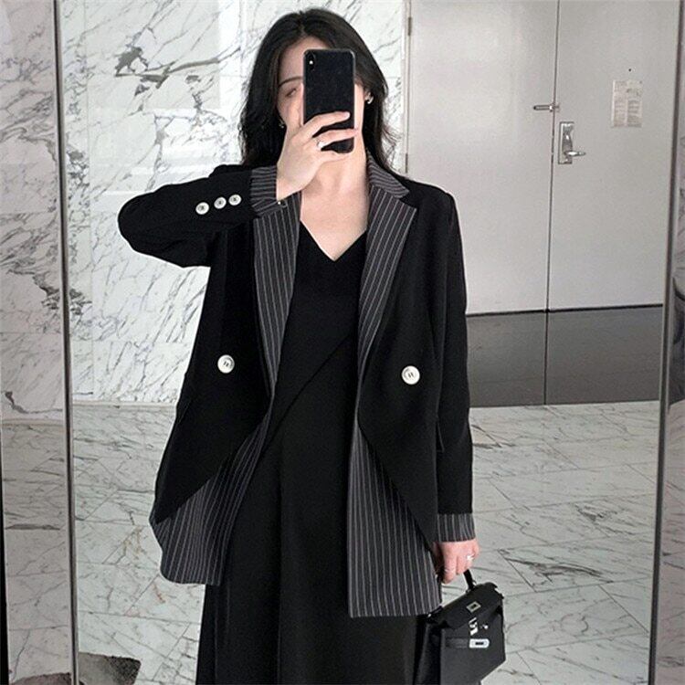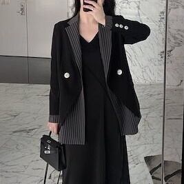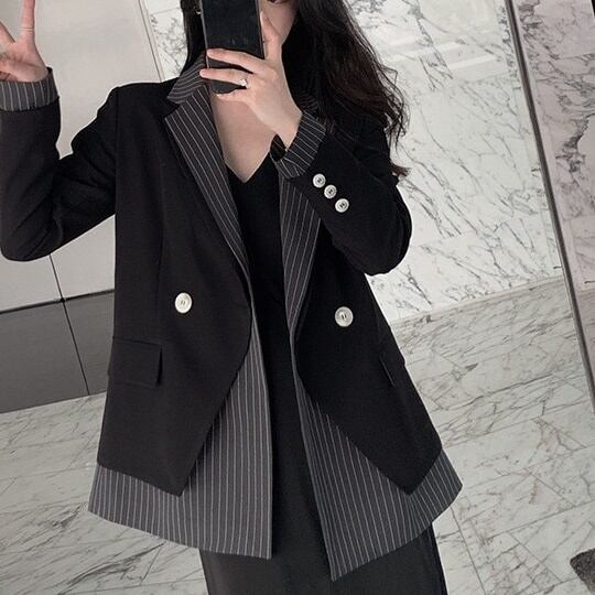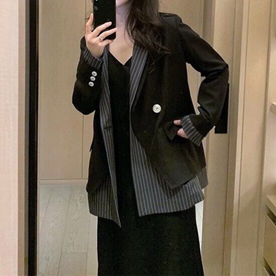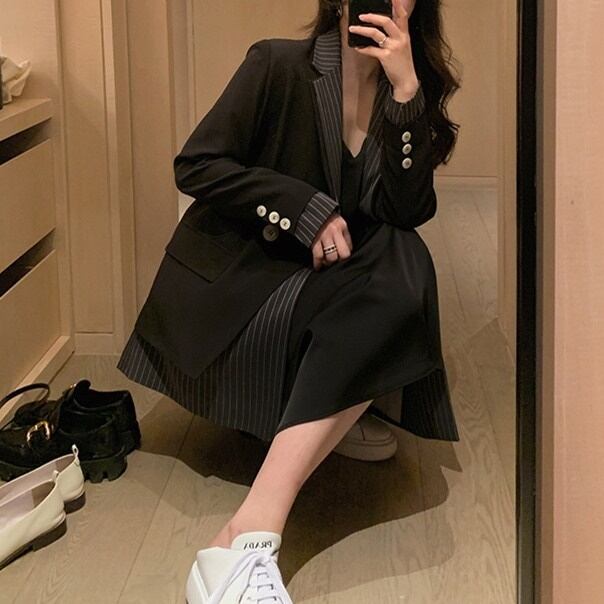 ジャケット レディース テーラードジャケット チェック マニッシュ バイカラー ストライプ フェイクレイヤード アウター ミディアム丈 オーバーサイズ 韓国風 軽い 冬服 アウター 暖かい 大きいサイズ スリム 防寒 10代 20代 30代 40代 レディース オフィス OL 通勤 学生 通学 デート お出かけ 女子会 リゾート 旅行 着回し 普段使い 韓国系 オルチャン ファッション コーデ スタイル モテ 体型カバー カーキ ブラック アプリコット