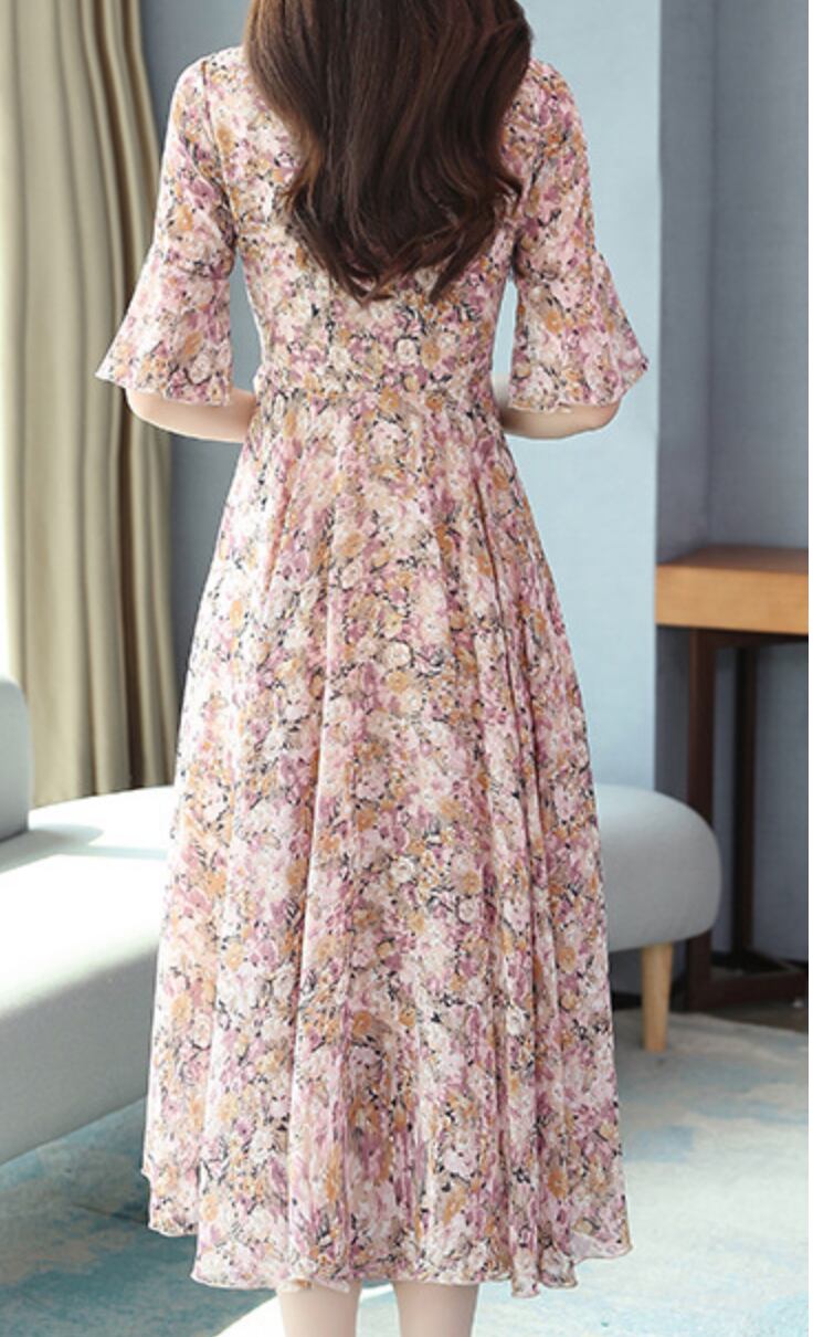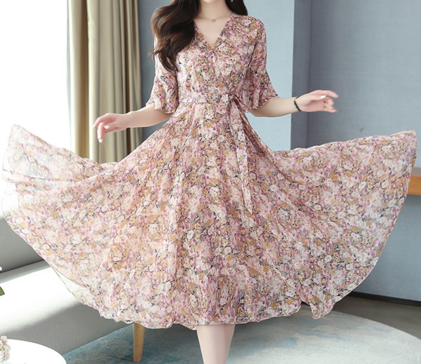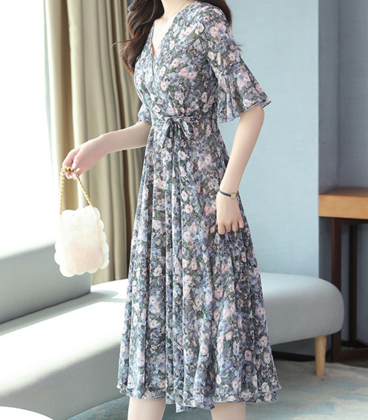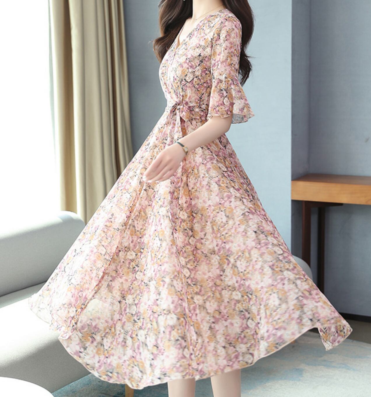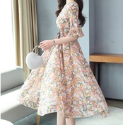 ワンピース 上着 人気 おすすめ おしゃれ お洒落 激安 安い 送料無料 プチプラ 半袖 Vネック ふわふわ パフスリーブ ふんわり Aライン 膝丈 柄 花柄 リボン 透け シフォン プリント 可愛い かわいい 韓国 カジュアル きれいめ 大人 上品 フォーマル 春 スプリング サマー 夏 結婚式 レディース 女性用 20代 30代 S M L XL 2XL 3XL 青 ブルー 黄色 イエロー 桃色 ピンク パステルカラー くすみカラー 大人カラー 春カラー デート フェミニン