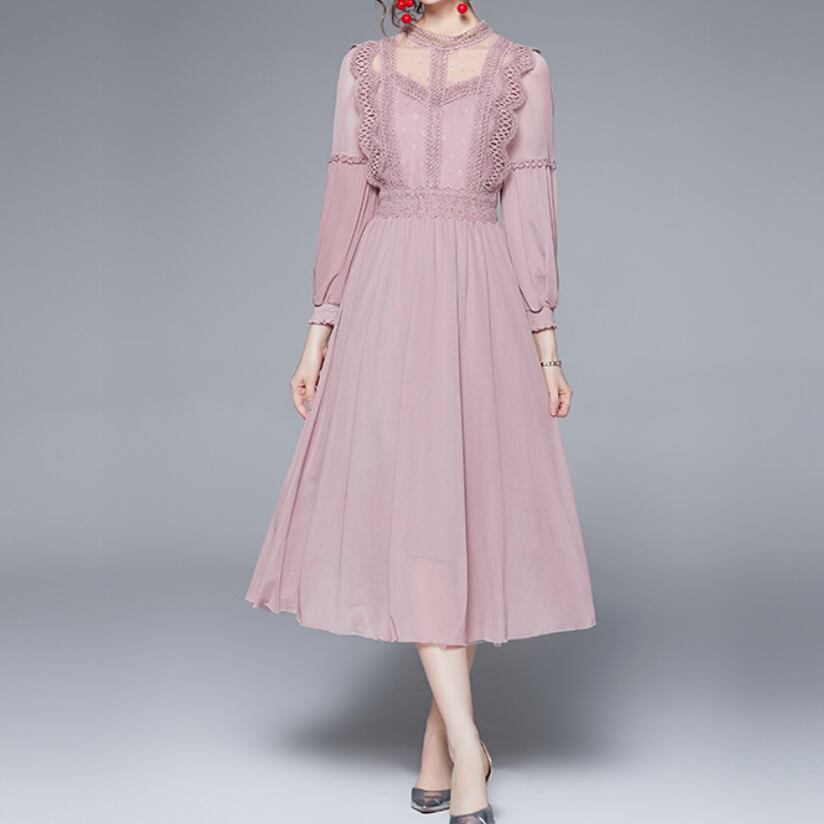 ワンピース 上着 人気 おすすめ おしゃれ お洒落 激安 安い 送料無料 プチプラ 長袖 ロング シースルー ラウンドネック 丸首 ふんわり Aライン 膝丈 レース 透け ポリエステル 可愛い かわいい 韓国 シンプル きれいめ 大人 上品 フォーマル 春 スプリング サマー 夏 結婚式 レディース 女性用 20代 30代 S M L XL 2XL 桃色 ピンク パステルカラー くすみカラー 大人カラー 春カラー デート フェミニン