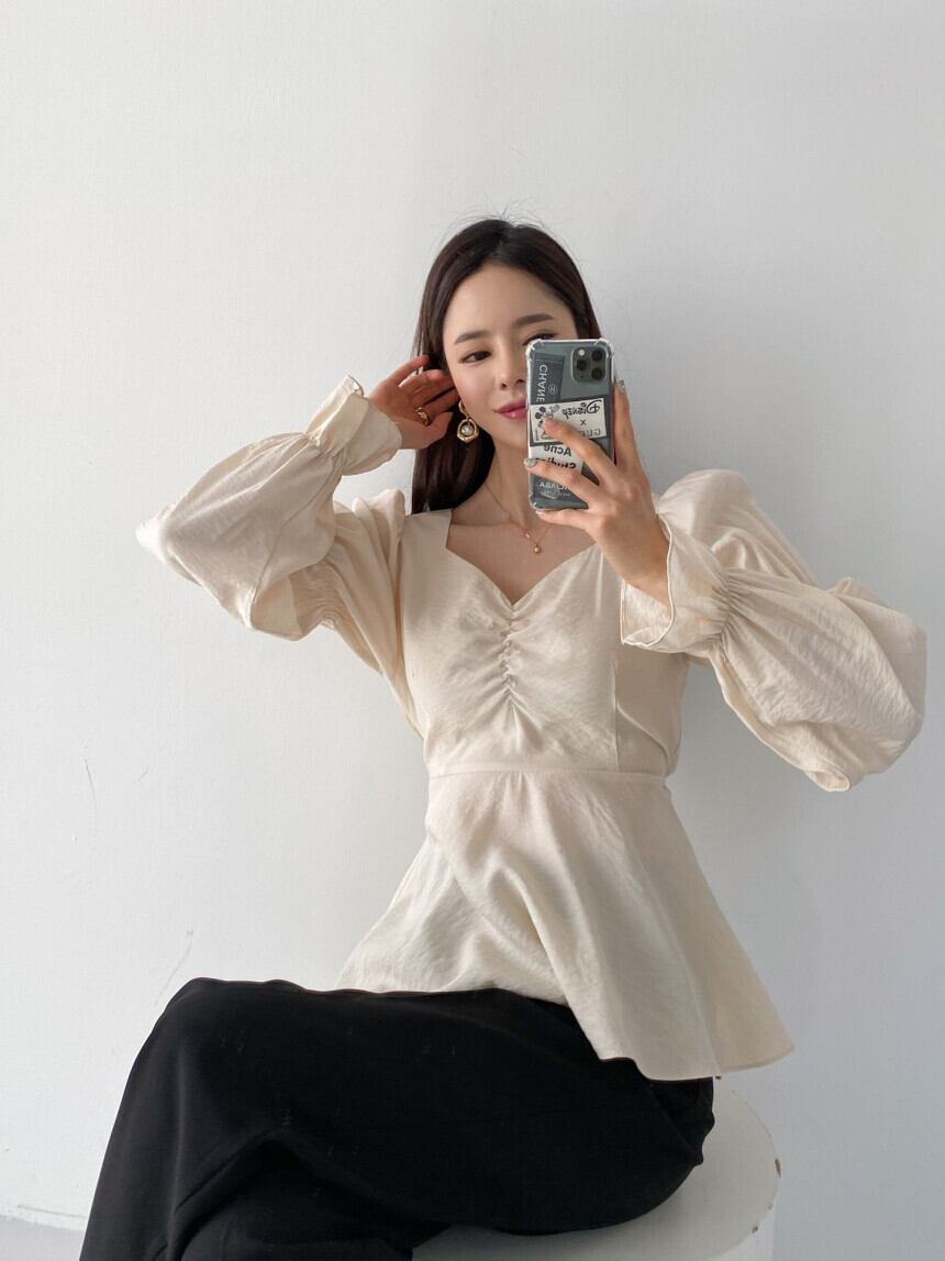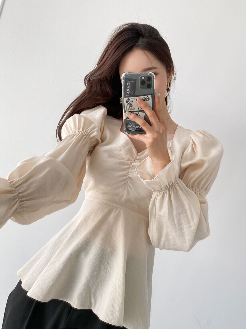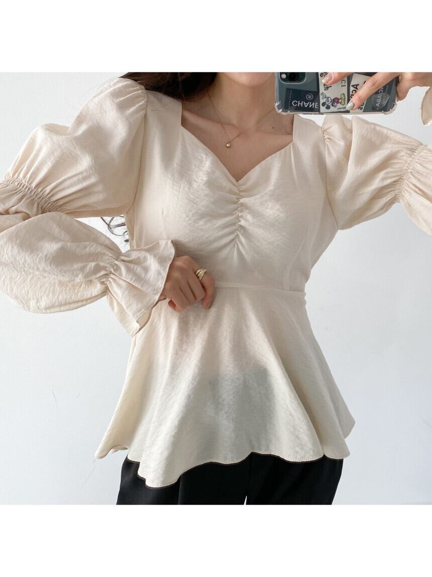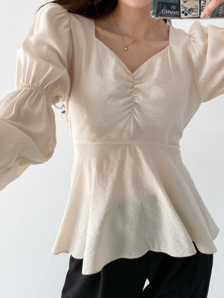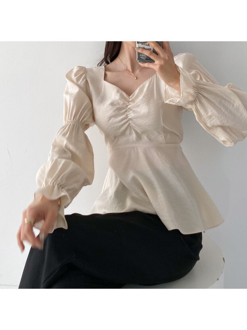 ボリューム感のある袖が印象的なフレアブラウス。