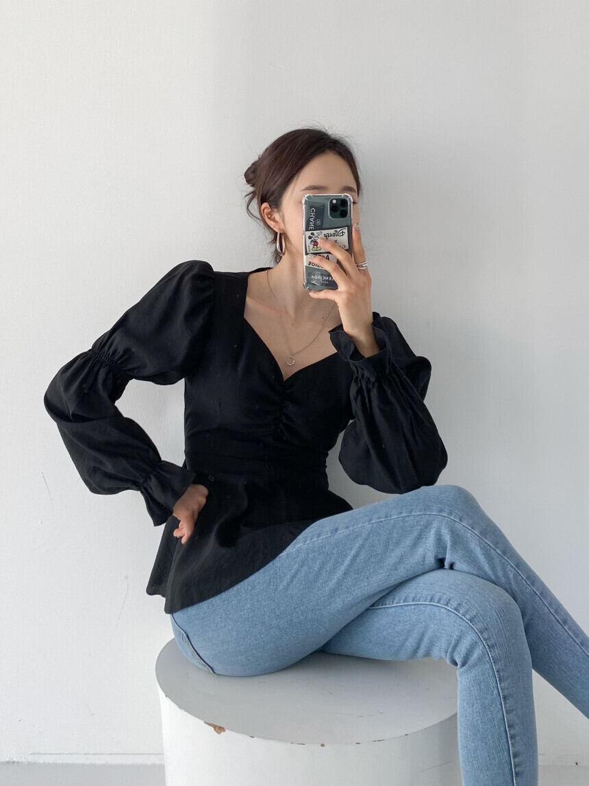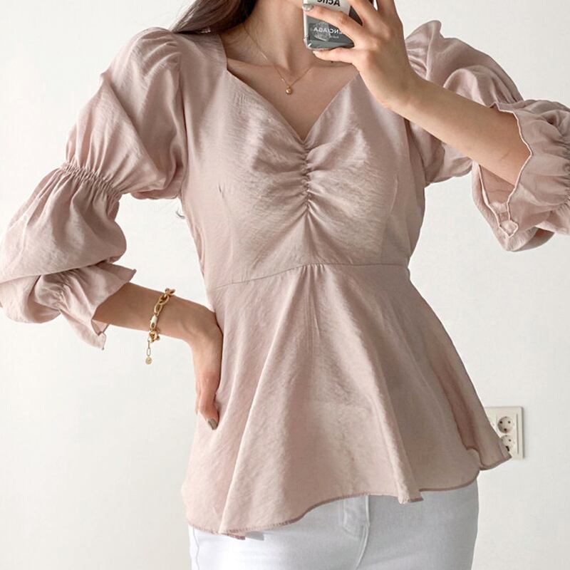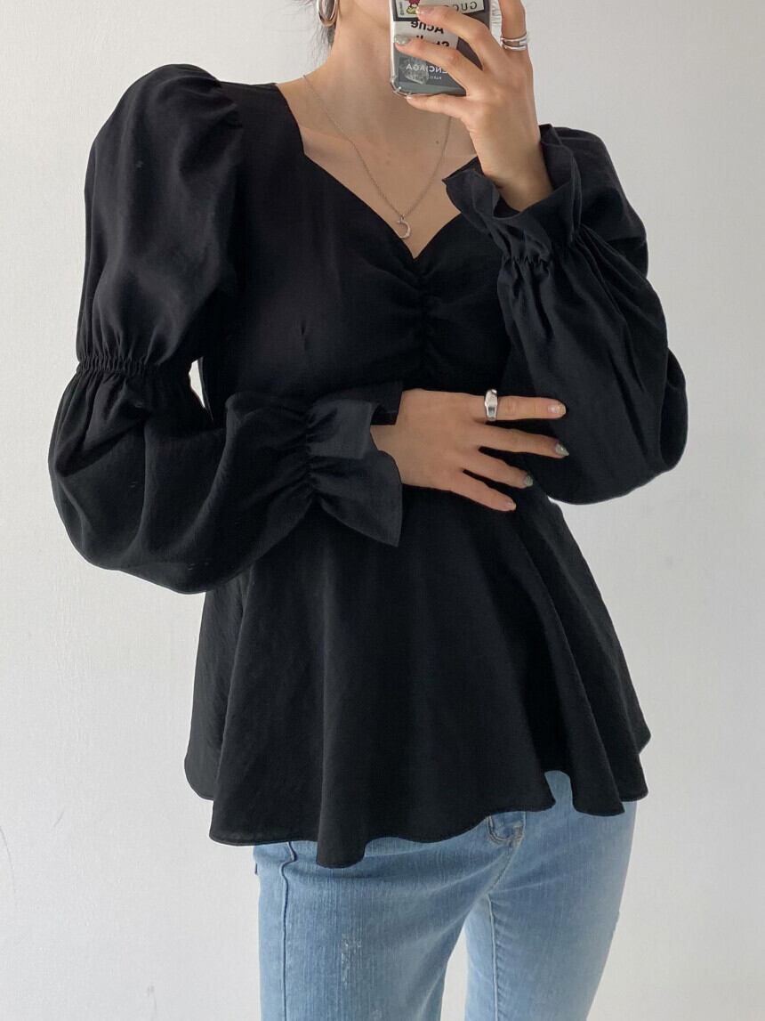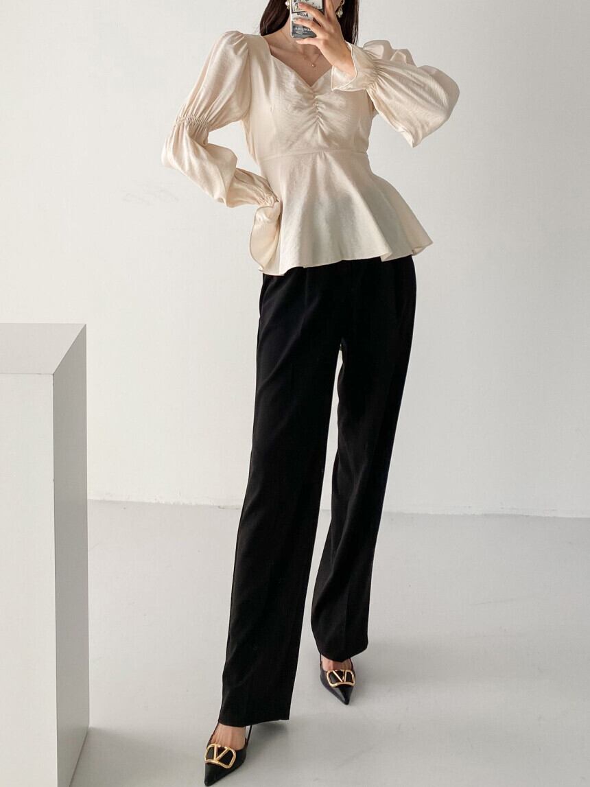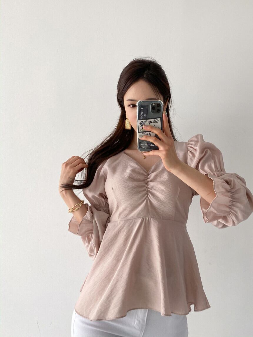 ボリューム感のある袖が印象的なフレアブラウス。