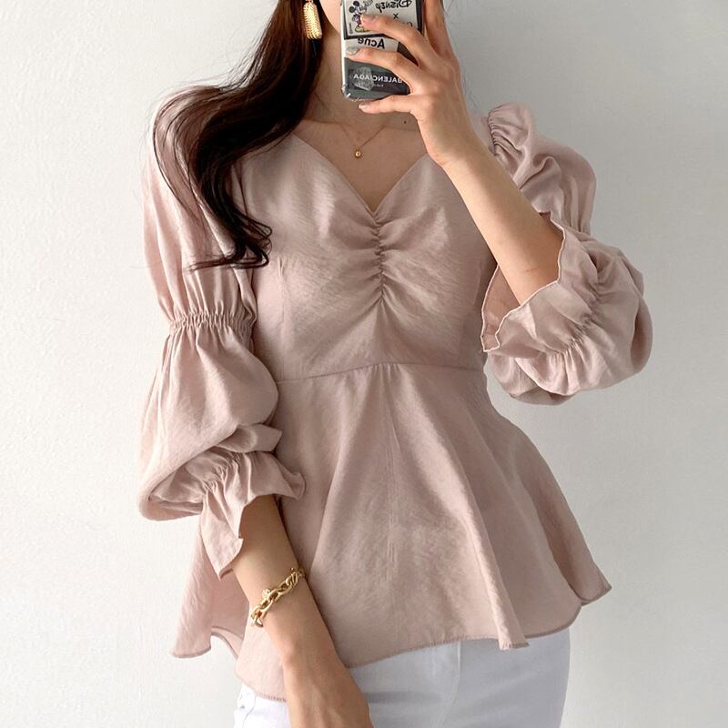 トップス シャツ ブラウス 袖あり 長袖 袖コンシャス Vネック フレア かわいい 大人可愛い きれいめ シンプル カジュアル 大人 上品 おしゃれ お洒落 レトロ 大人可愛い 大人女子 こなれ感 マニッシュ 個性的 モード系 セクシー エレガント モダン 主役級 存在感 抜け感 フェミニン 大人カジュアル オフィスカジュアル オフィカジ 華やか 無地 春 秋 10代 20代 30代 40代 レディース 女性用 ママ オフィス ビジネス OL 通勤 学生 通学 デート お出かけ 公園デビュー 女子会 休日