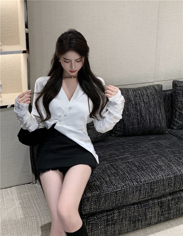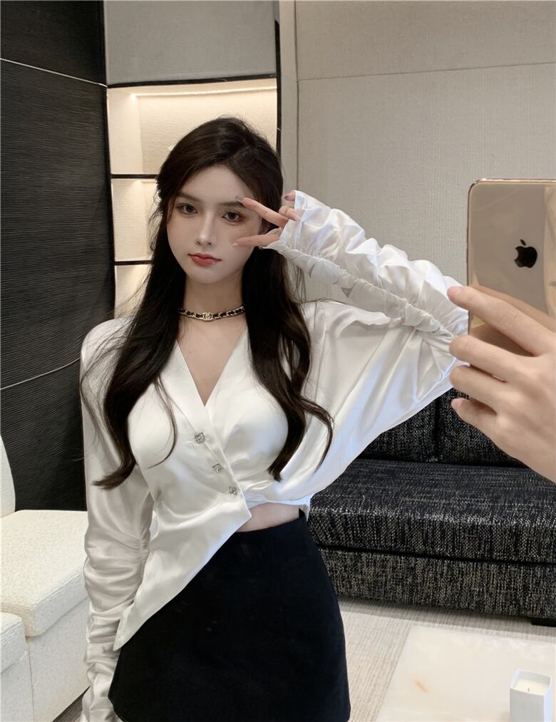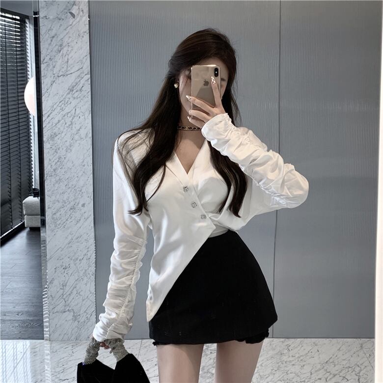 トップス シャツ ブラウス 白シャツ 白トップス 袖あり 長袖 Vネック かわいい 大人可愛い きれいめ シンプル カジュアル 大人 上品 おしゃれ お洒落 かっこいい レトロ 大人可愛い 大人女子 こなれ感 マニッシュ ラブリー 個性的 クール モード系 セクシー エレガント モダン 主役級 存在感 フォーマル とろみ感 フェミニン 大人カジュアル オフィスカジュアル オフィカジ 華やか 無地 春 秋 10代 20代 30代 40代 レディース 女性用 ママ オフィス ビジネス OL 通勤 学生 通学