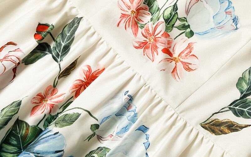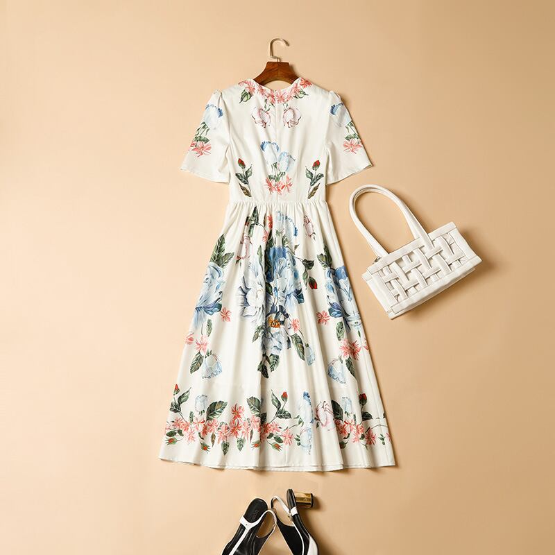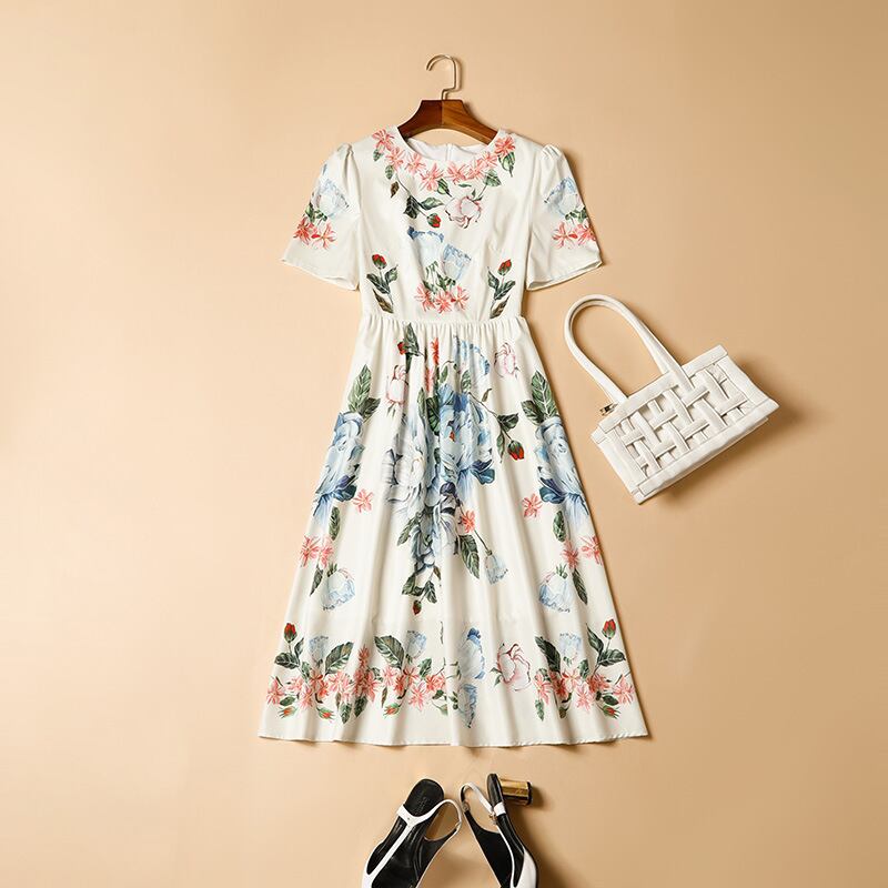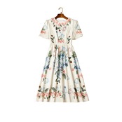 ワンピース ミディ丈 袖あり 半袖 ラウンドネック 花柄 フローラル 大人可愛い きれいめ シンプル カジュアル エレガント フレア 大人 上品 おしゃれ レトロ 春 夏 10代 20代 30代 40代 レディース デート お出かけ 女子会 着回し 普段使い オルチャン ファッション コーデ スタイル モテ 体型カバー S M L XL