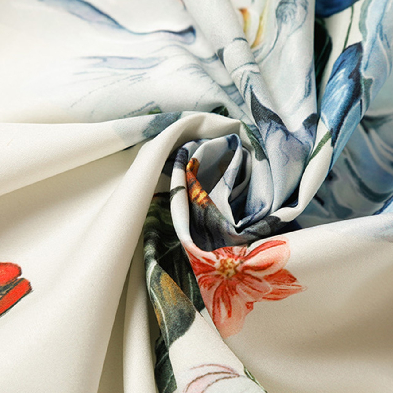 花柄とマルチカラーがレトロ感があって上品なワンピース。
