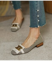 シーズンムード高まる千鳥格子柄のフラットパンプス。