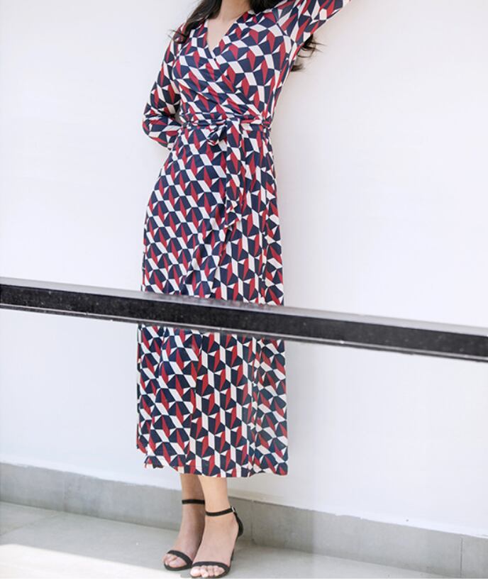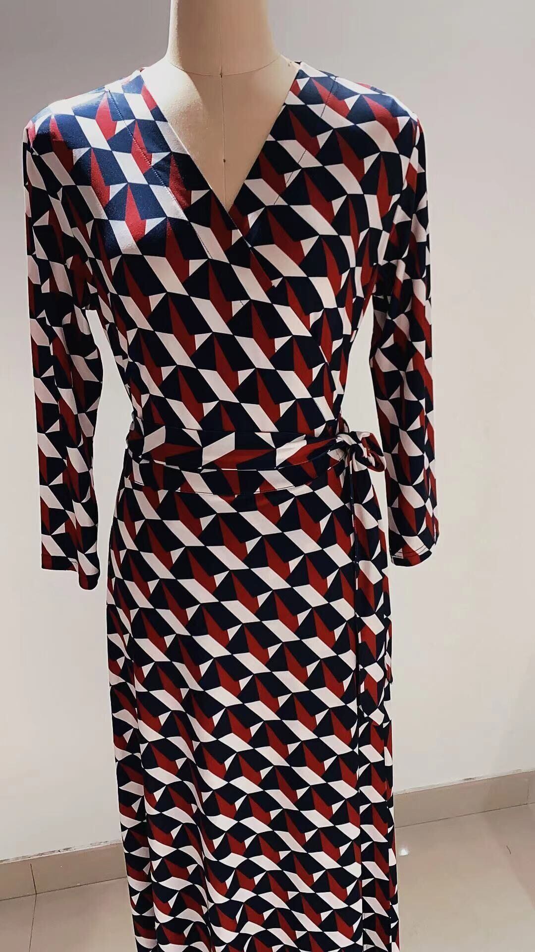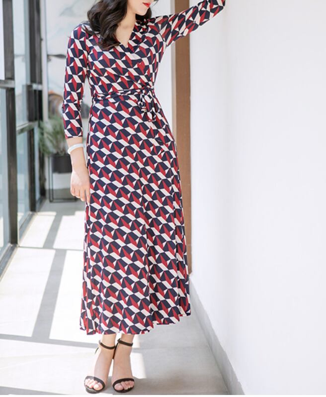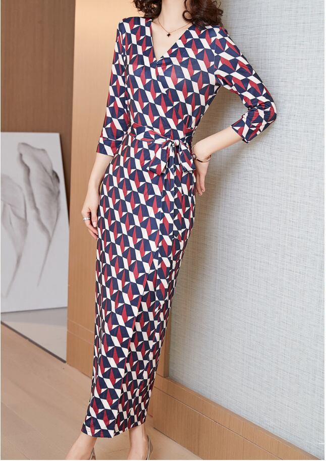 ワンピース 上着 人気 おすすめ おしゃれ お洒落 激安 安い 送料無料 プチプラ 長袖 ロング Vネック タイト 膝丈 スリット 柄 プリント 可愛い かわいい 韓国 カジュアル きれいめ 大人 上品 春 スプリング サマー 夏 レディース 女性用 20代 30代 40代 50代 S M L XL 紺 ネイビー 青 ブルー ワインレッド 大人カラー バイカラー 春カラー デート フェミニン ナチュラル
