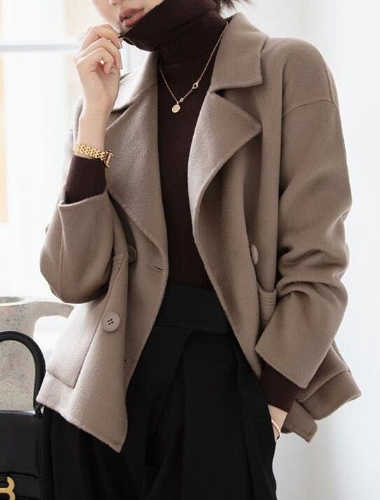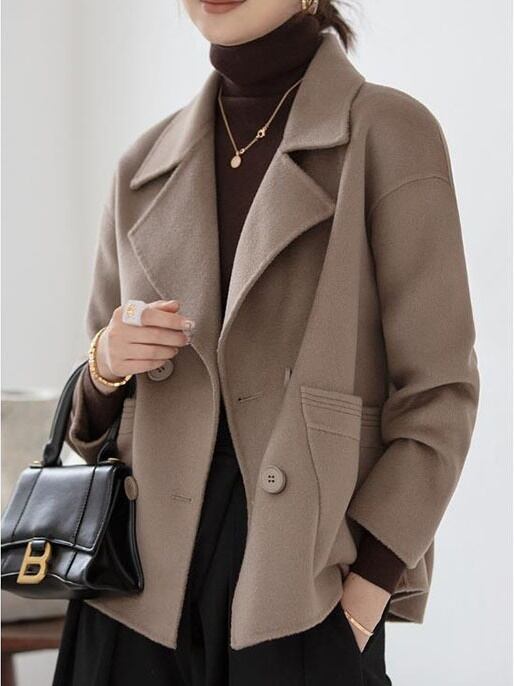 アウター ジャケット クロップ丈 ジャケット ショート丈 長袖 無地 ウールタッチ レトロ クラシカル 薄手 軽い 可愛い かわいい きれいめ 大人 上品 おしゃれ ファッション フェミニン こなれ感 カジュアル 春 スプリング 春先 オータム お出かけ デート 秋 冬 レディース 女性用 ママ 20代 30代 M L XL 2XL サイズ スリム グレー ブラック