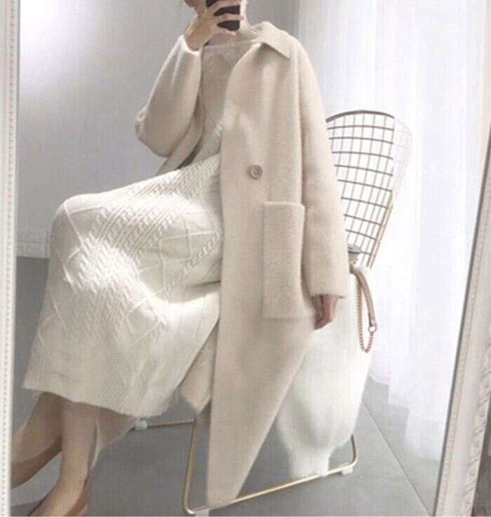 コート アウター 上着 シャギーニット チェスターコート 起毛 フワフワ オーバーサイズ 膝下丈 ミモレ丈 ロング丈 無地 ドロップショルダー 体型カバー 肌見せ 可愛い かわいい きれいめ 大人 上品 エレガント 抜け感 こなれ感 シンプル ナチュラル カジュアル フェミニン スタイリッシュ 春 スプリング 春先 秋 オータム レディース 女性用 ママ 低身長 40代 50代 10代 20代 30代 ゆったり ゆる 白 ホワイト ブラック大人カラー