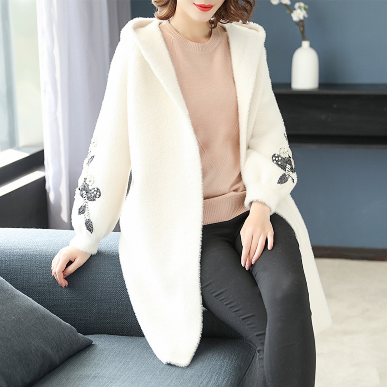 コート レディース ジャケット ノーカラーフード付き 起毛 ふわふわ 花柄 刺繍 スパンコール 薄手 アウター ボア もこもこ ミディアム丈 オーバーサイズ 軽い 軽量 冬服 厚手 アウター 暖かい 大きいサイズ スリム 防寒 10代 20代 30代 40代 レディース オフィス OL 通勤 学生 通学 デート お出かけ 女子会 リゾート 旅行 着回し 普段使い 韓国系 オルチャン ファッション コーデ スタイル モテ 体型カバー S M L XL 2XL 3XL ブラック グリーン グレー