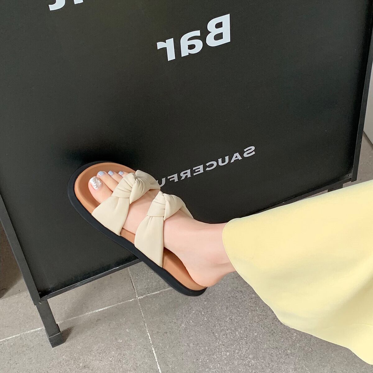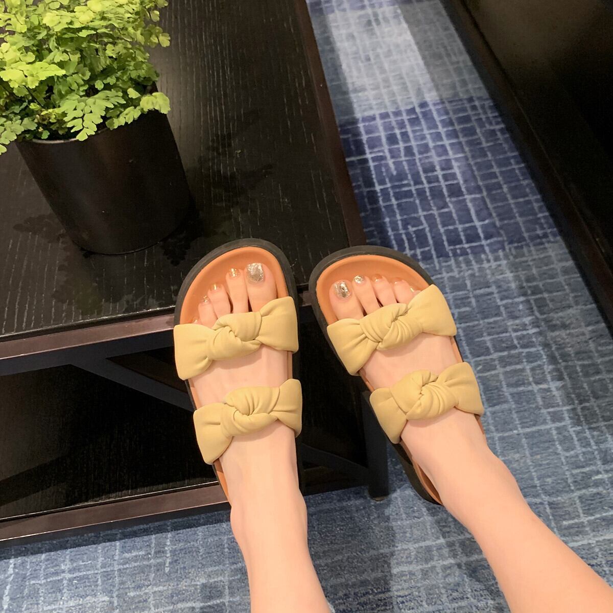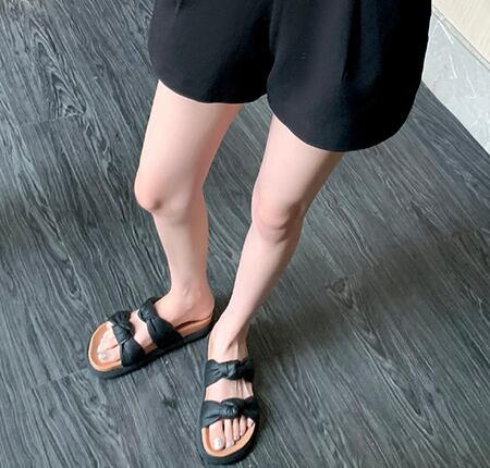 長く歩いても疲れにくいフラットソールだからうれしい。