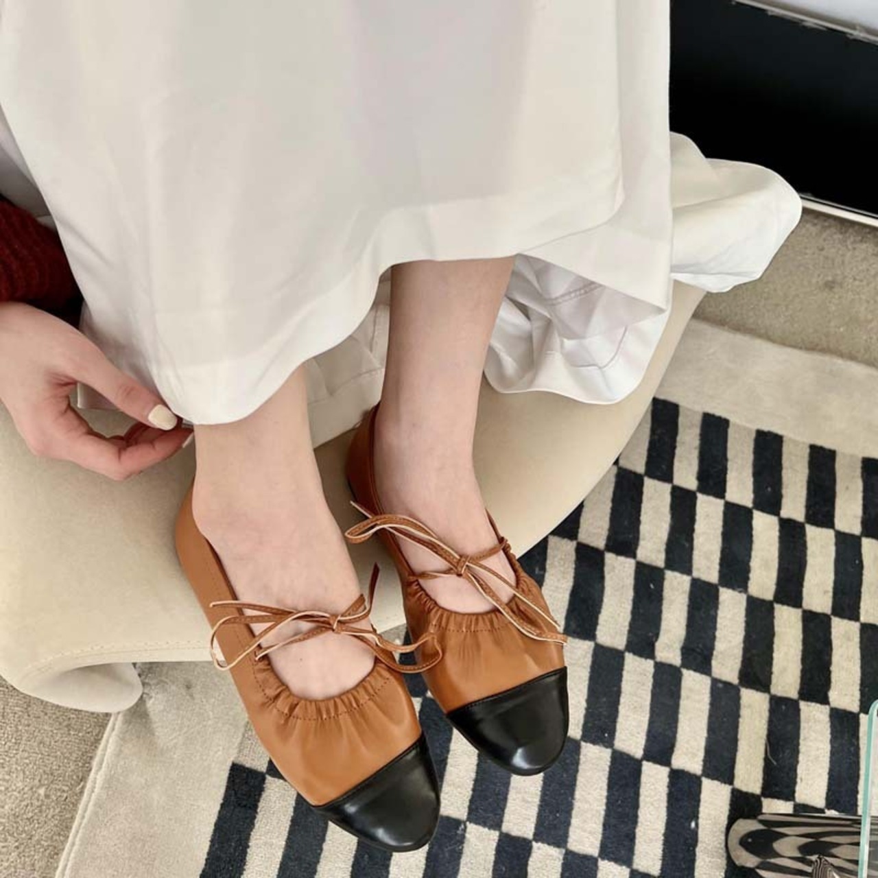 おしゃれ心くすぐられるデザインのフラットなシューズ。