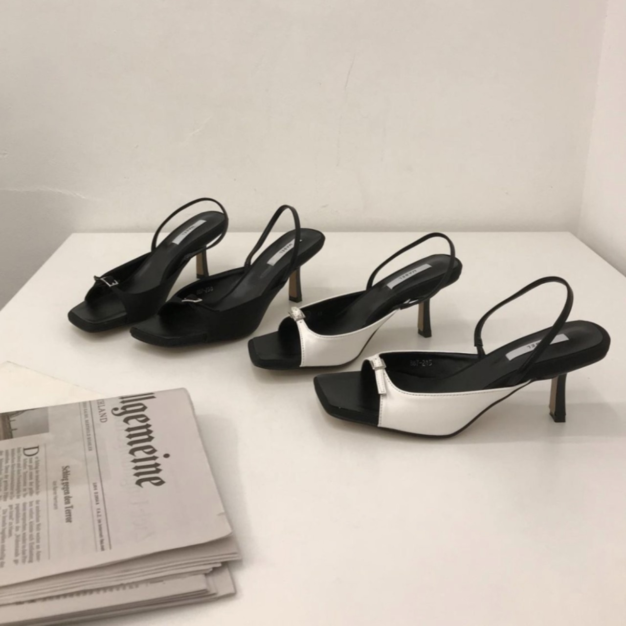 スクエアトゥデザインや細めのストラップが大人上品なサンダルです。