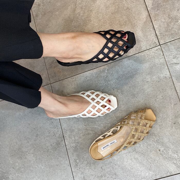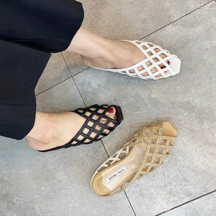 見た目にも涼しげなメッシュのぺたんこミュール。
