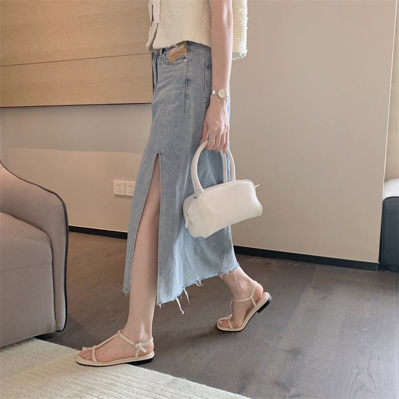 今季トレンドの華奢ストラップが特徴のローヒールサンダル。