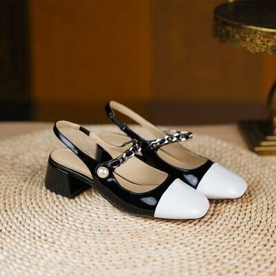 ストラップのデザインがフェミニンで太めなヒールに歩きやすくてエレガントな靴。