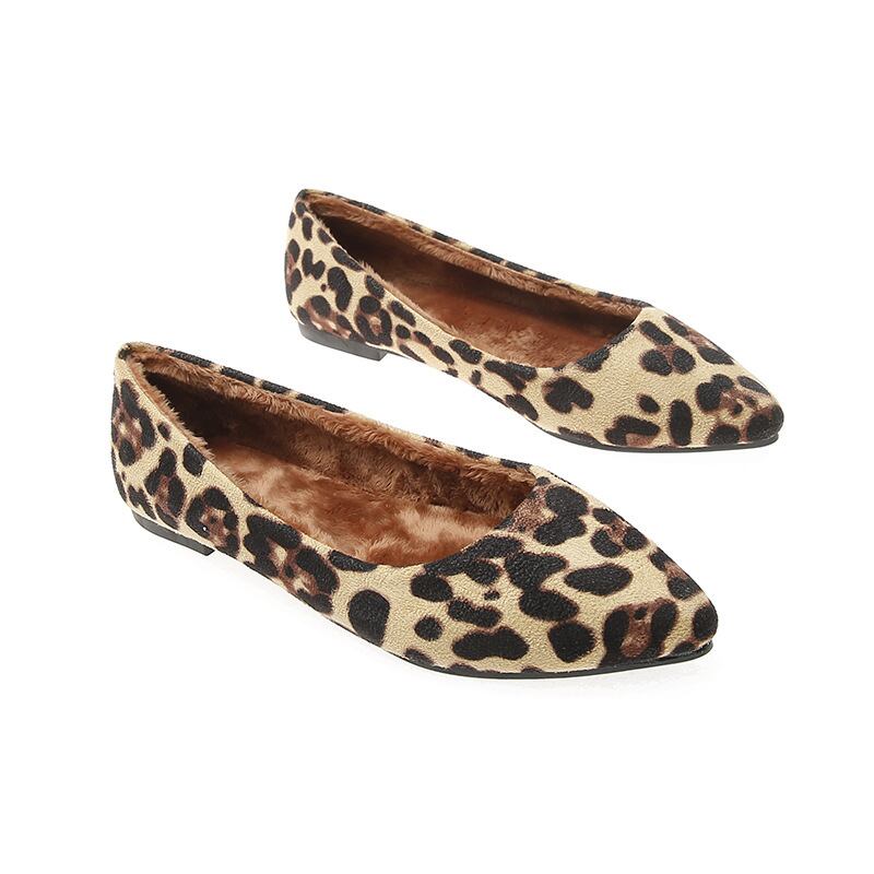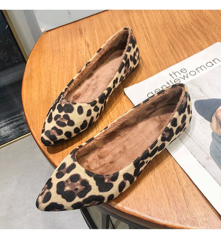 ふわふわのヒョウ柄デザインのフラットパンプス。