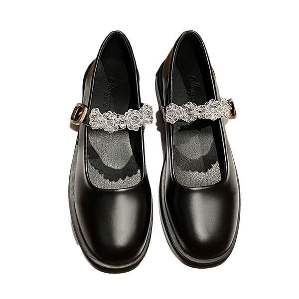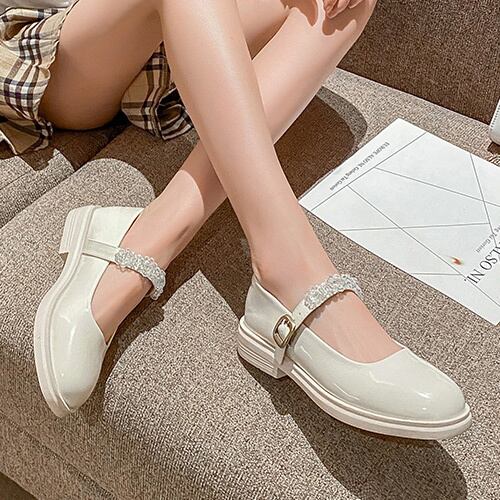 レディースシューズ 婦人靴 フラットシューズ ローヒール ストラップ付きパンプス ラウンドトゥ アーモンドトゥ ラバーソール レザー調 フェイクレザー ビジュー キラキラ アクセ付き 無地 ワントーン 安定感 歩きやすい 疲れない 脚長効果 スタイルアップ 華奢見え 身長盛れる スカートに合う 大人 可愛い かわいい かっこいい きれいめ 華やか シンプル 上品 エレガント フェミニン カジュアル クール スタイリッシュ ナチュラル ガーリー キュート 女性用 黒 ベージュ オフホワイト