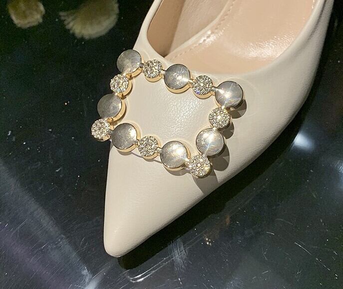 キラキラのビジューディテールがアクセントになったパンプスです。