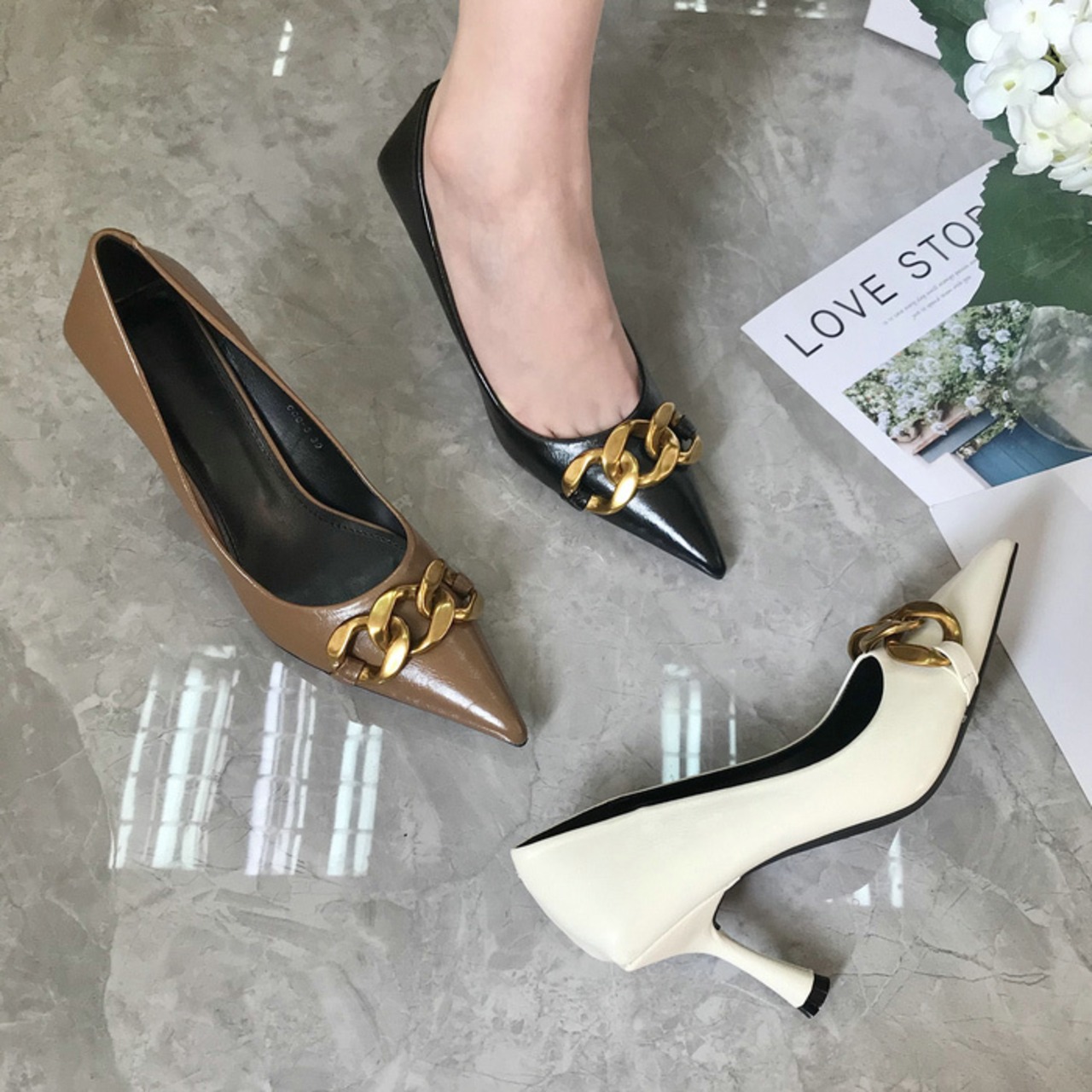レディースシューズ 婦人靴 ヒールシューズ ハイヒール ピンヒール パンプス ポインテッドトゥ レザー調 フェイクレザー チェーン ゴールド 脚長効果 スタイルアップ 華奢見え 身長盛れる スカートに合う 大人 可愛い かわいい かっこいい きれいめ 華やか 高級感 シンプル 上品 エレガント フェミニン カジュアル クール スタイリッシュ 女性用 黒 茶色 ベージュ オフホワイト 大人カラー ベーシックカラー おしゃれ お洒落 人気 送料無料