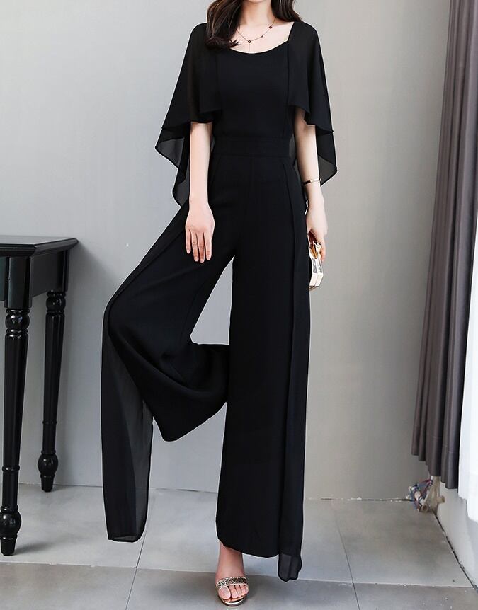 モードな仕立てがかっこいいシフォン仕立てのセットアップです。