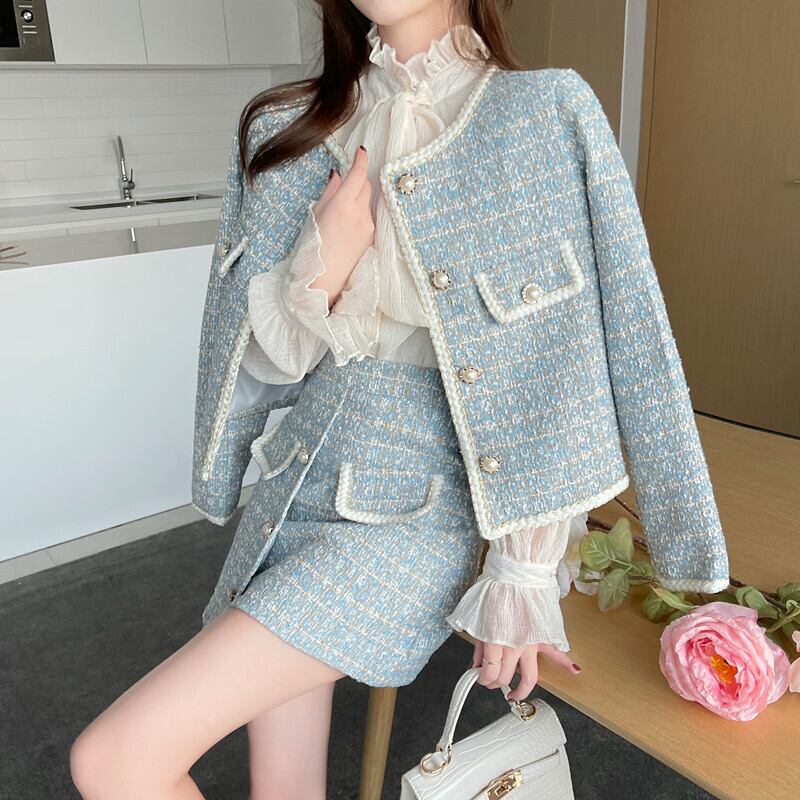 大人可愛いツイードジャケット&スカートのセットアップです。