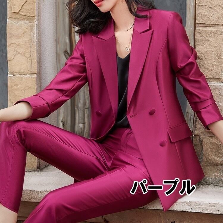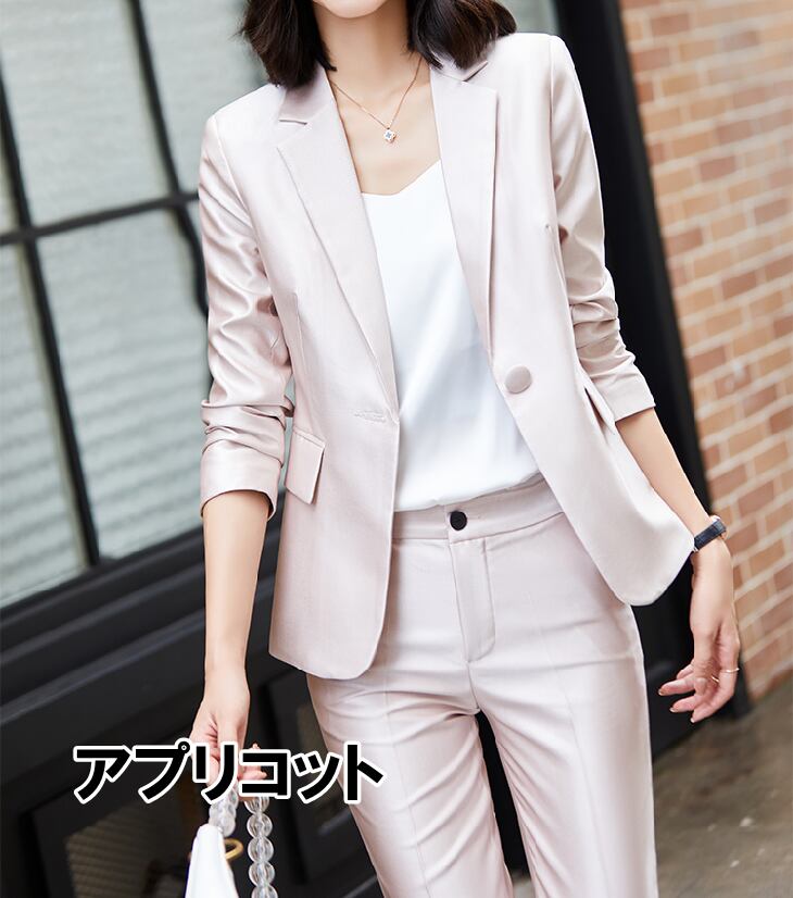 セットアップ ジャケット 上着 スーツ ロング丈 袖あり サテン調 ツヤ感 長袖 スラックス センタープレス スリム アンクルパンツ タイト 上下セット 2点セット ツーピース かわいい 大人可愛い きれいめ シンプル カジュアル 大人 上品 おしゃれ お洒落 大人女子 こなれ感 ラフ マニッシュ モード系 セクシー エレガント モダン 主役級 存在感 フォーマル フェミニン 大人カジュアル オフィスカジュアル オフィカジ 柄 チェック柄 春 秋 入学式 入園式 卒業式 卒園式 10代 20代 30代