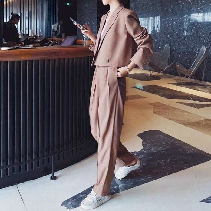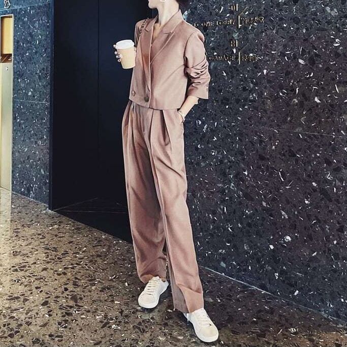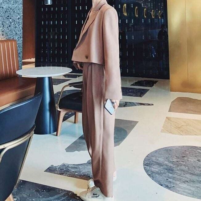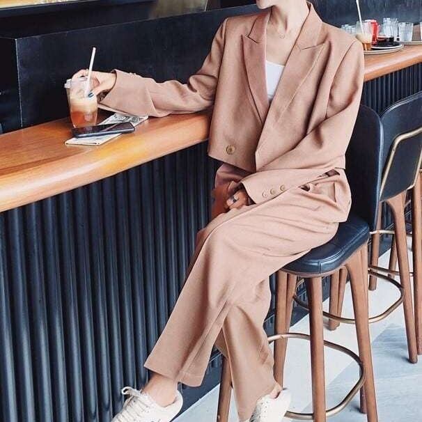 トレンド感あふれるオーバーサイズのジャケットとパンツのセットアップです。