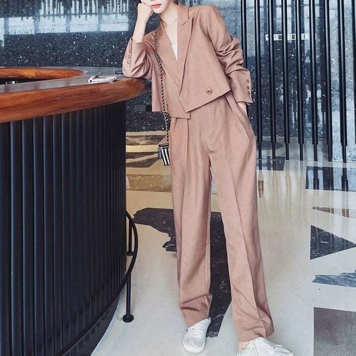 セットアップ ジャケット 上着 スーツ ワイドパンツ ビッグシルエット レトロ マニッシュ クロップ丈 ツータック センタープレス 袖あり 長袖 上下セット 2点セット ツーピース 大人可愛い きれいめ シンプル カジュアル 大人 上品 おしゃれ お洒落 かっこいい 大人女子 こなれ感 ラフ マニッシュ 個性的 モード系 エレガント モダン 主役級 存在感 フォーマル フェミニン 大人カジュアル オフィスカジュアル オフィカジ 華やか 無地 春 秋 入学式 入園式 卒園式 10代 20代 30代 40代