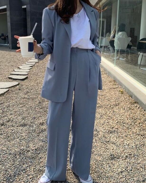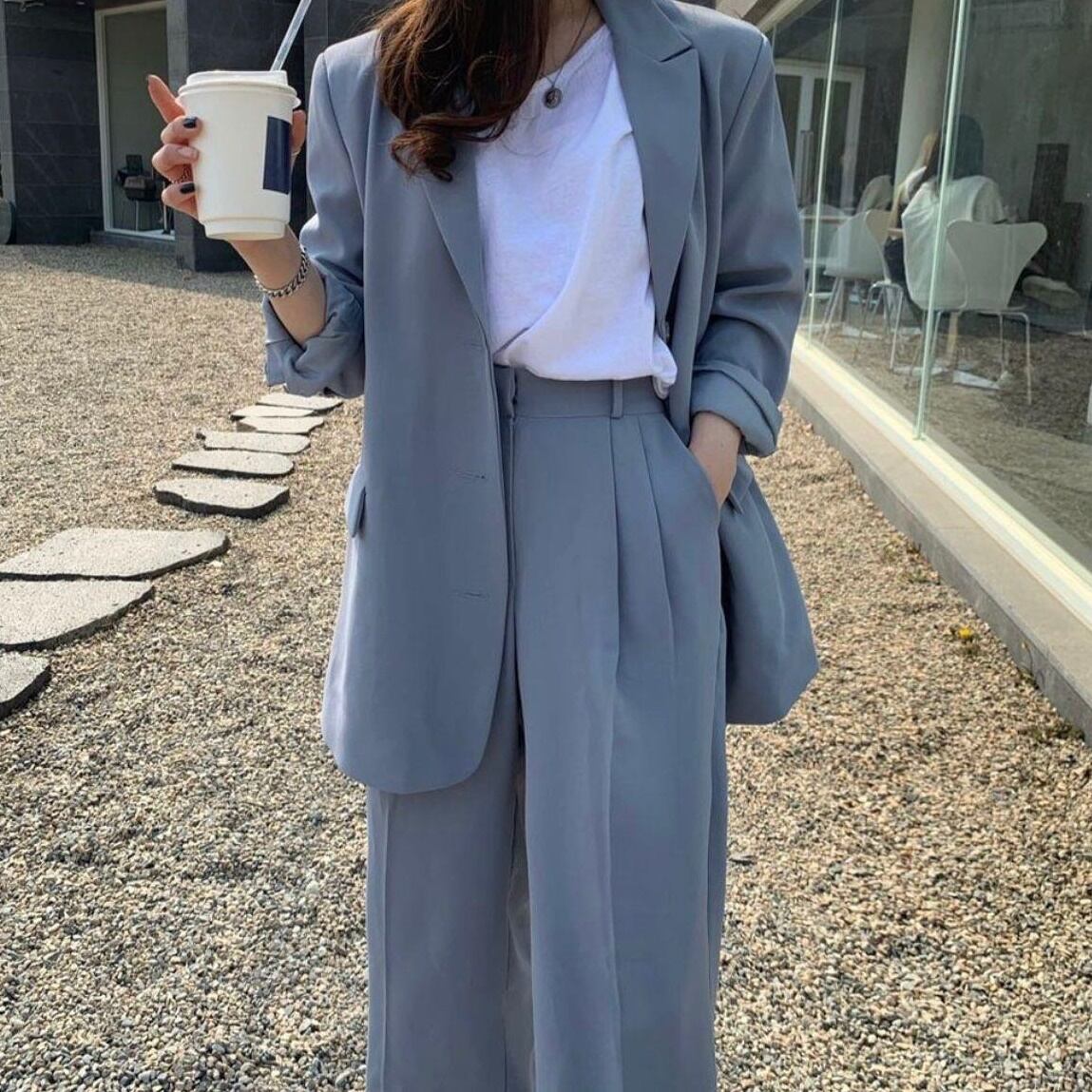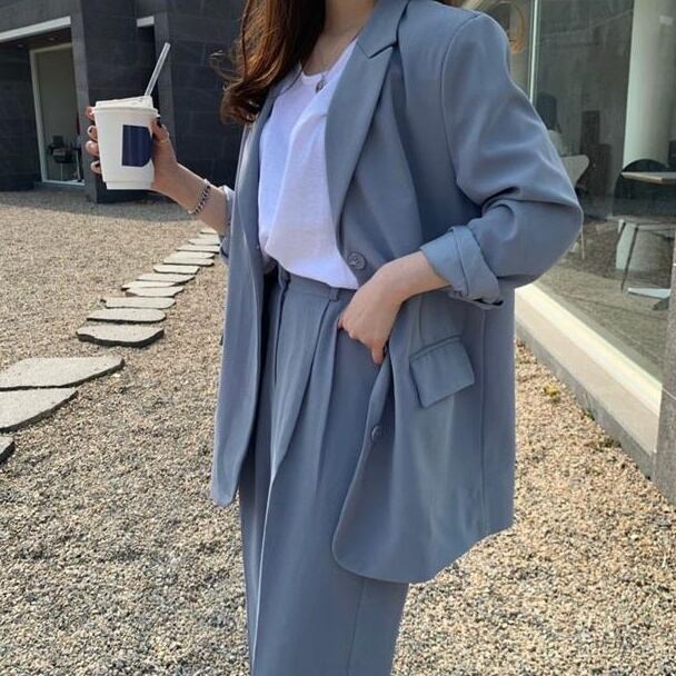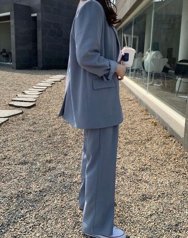 トレンド感あふれるオーバーサイズのジャケットとパンツのセットアップです。