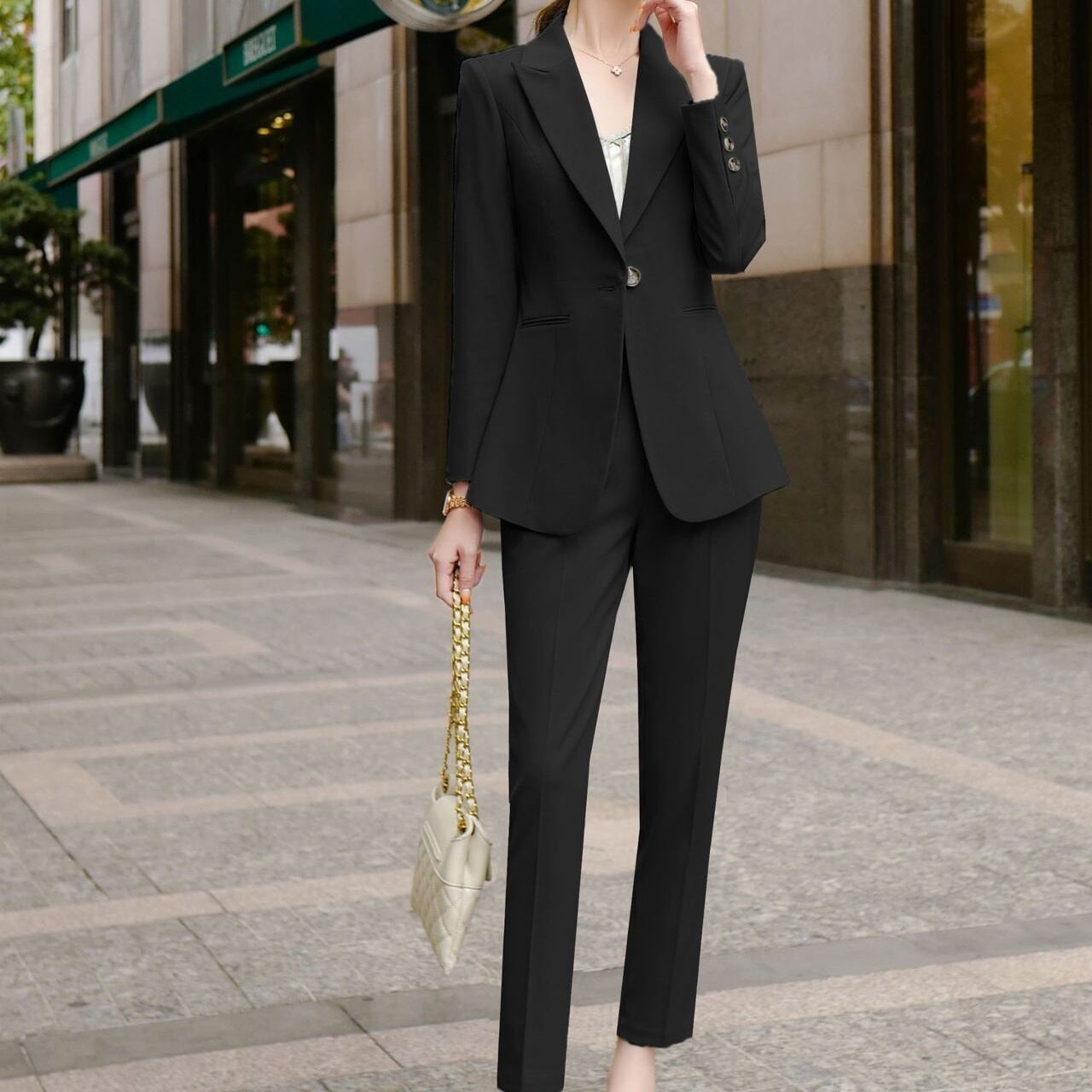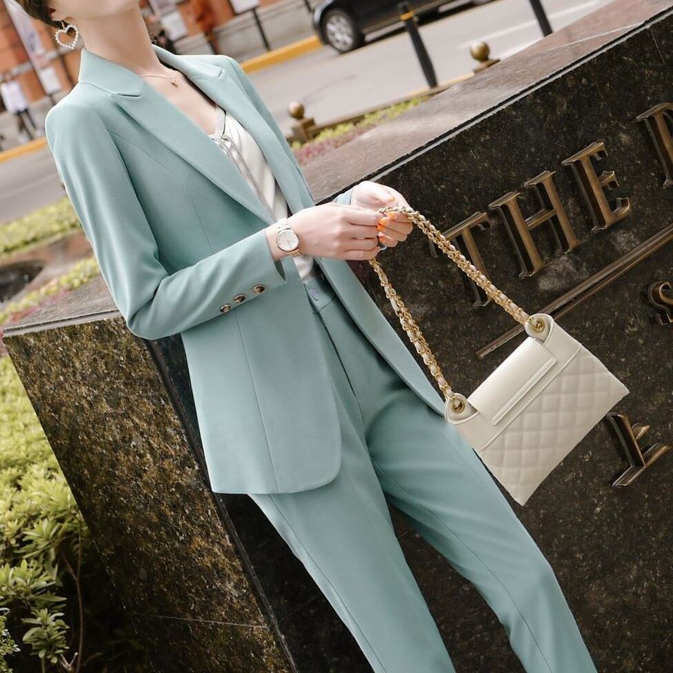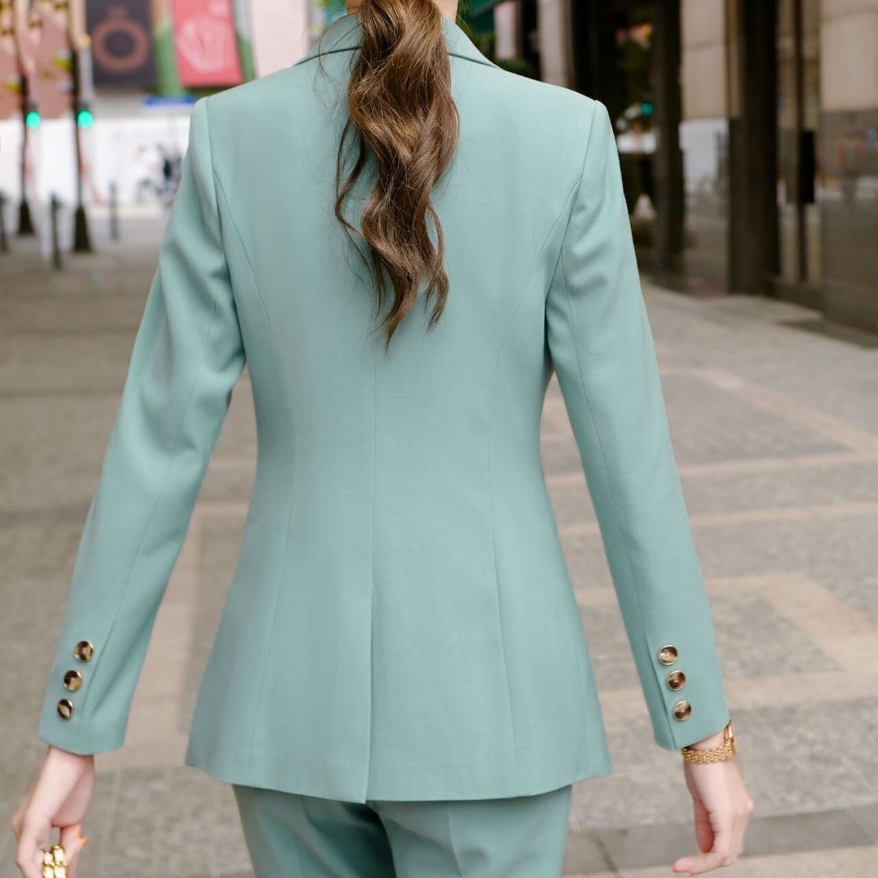 セットアップ スーツ パンツ ボトムス ジャケット シングルブレスト べっ甲ボタン くすみカラー 長袖 ロング アンクル丈 センタープレス ハイウエスト ストレート 襟付き Vネック レトロ ビッグシルエット 韓国 スリム タイト きれいめ 高品質 大人 上品 ストレートパンツ フォーマル 秋 オータム 冬 ウィンター レディース 女性用 20代 30代 S M L XL 黒 ブラック 緑 大人カラー 秋カラー フェミニン オフィス プロフェッショナル エレガント OL グリーン イエロー ピンク