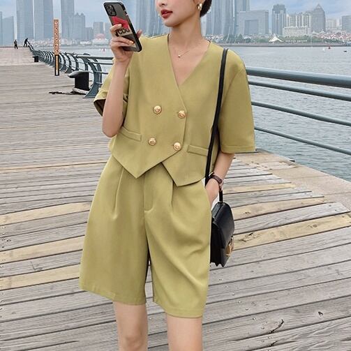 セットアップ ジャケット スーツ ジャケット テーラード アウター ショートパンツ 半袖 クロップ丈 Vネック ワンタック ハーフパンツ レトロショート丈 袖あり 長袖 2点セット シンプル カジュアル 大人 上品 おしゃれ かっこいい レトロ 大人女子 ラフ 春 秋 10代 20代 30代 40代 レディース デート お出かけ 女子会 休日 着回し 普段使い 重ね着 韓国系 オルチャン ファッション コーデ スタイル モテ 体型カバー トレンド S M L ブラウン グレー