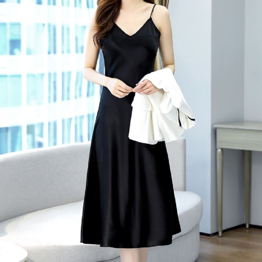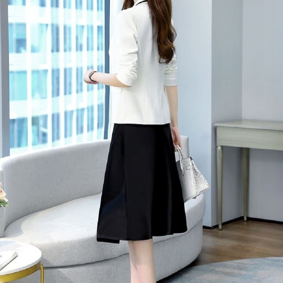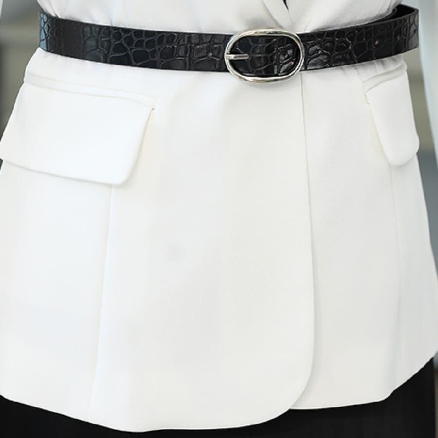 白のジャケットとシンプルなキャミワンピの2点セット。