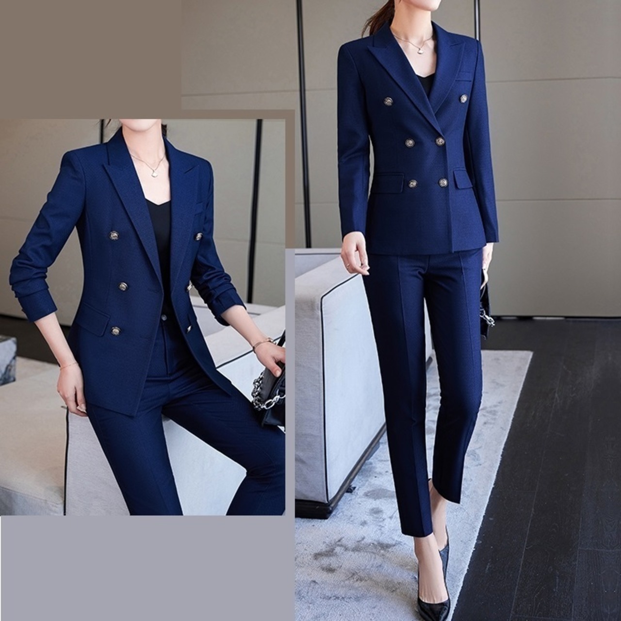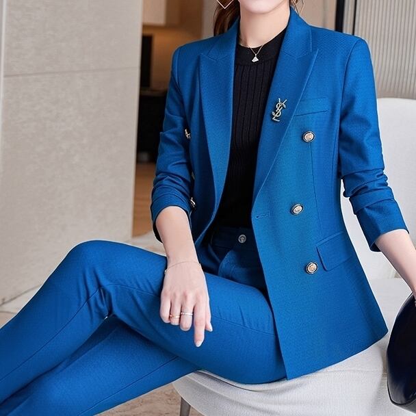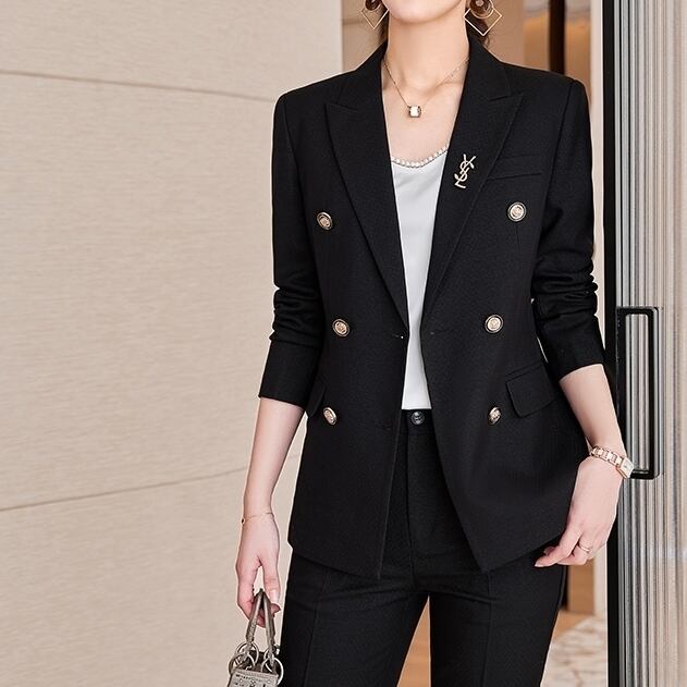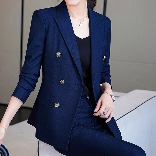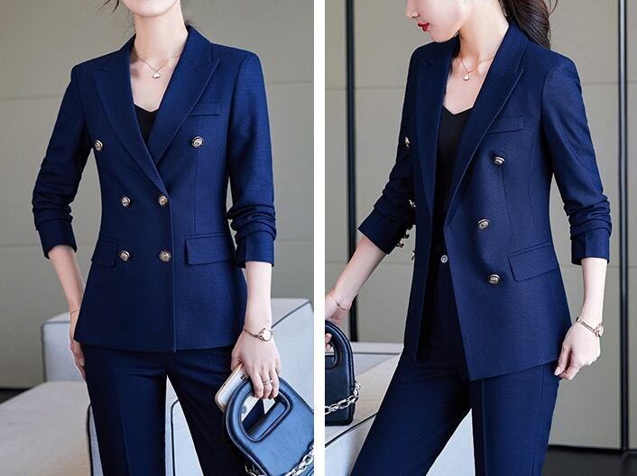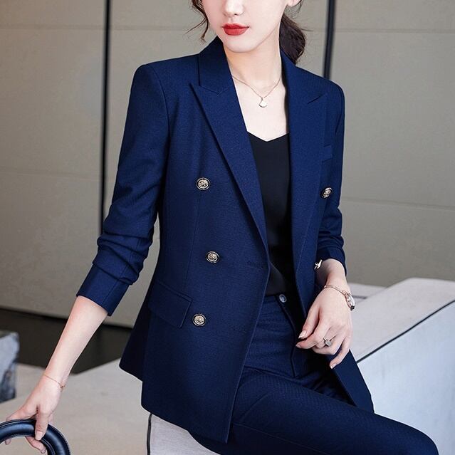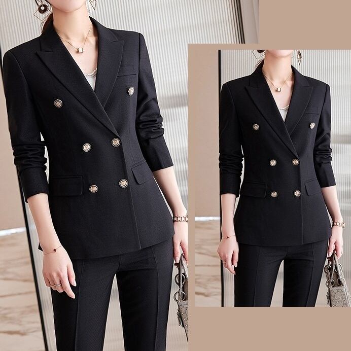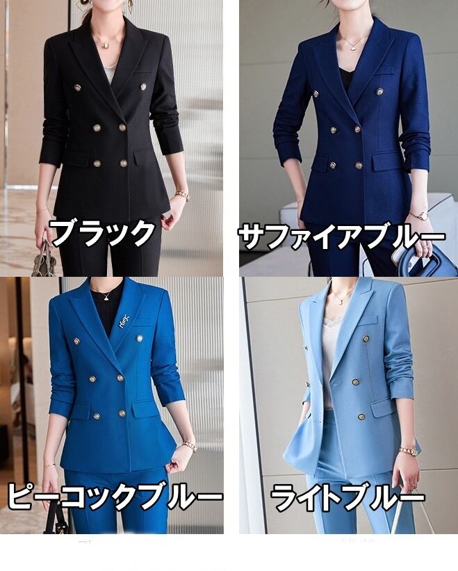 セットアップ スーツ パンツ ボトムス ジャケット ダブルブレスト 長袖 ロング 無地 センタープレス スラックス アンクル丈 ハイウエスト ストレート 襟付き Vネック レトロ ビッグシルエット 韓国 スリム タイト きれいめ 高品質 大人 上品 ストレートパンツ フォーマル 秋 オータム 冬 ウィンター レディース 女性用 20代 30代 S M L XL 黒 ブラック 緑 大人カラー 秋カラー フェミニン オフィス プロフェッショナル エレガント OL ブルー