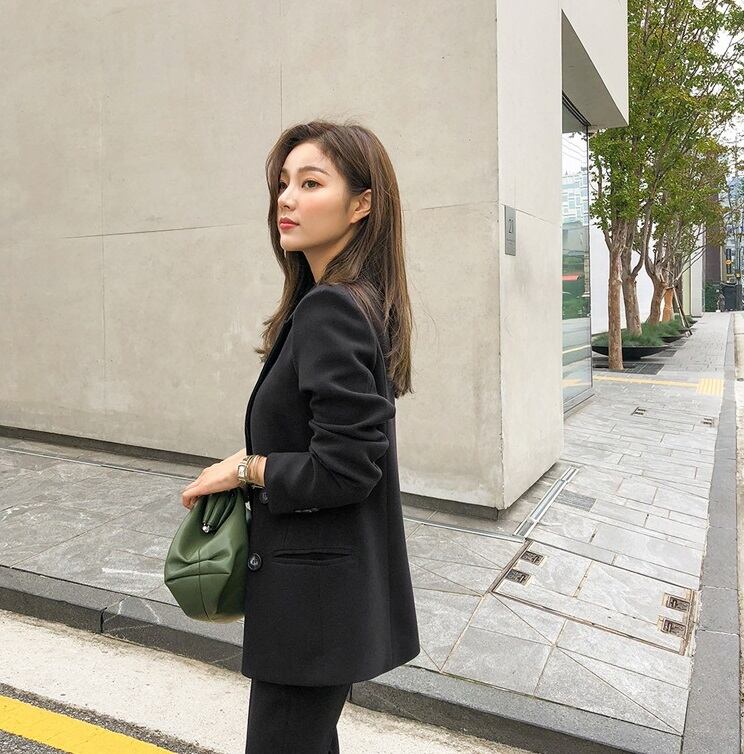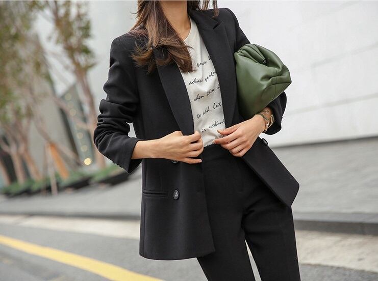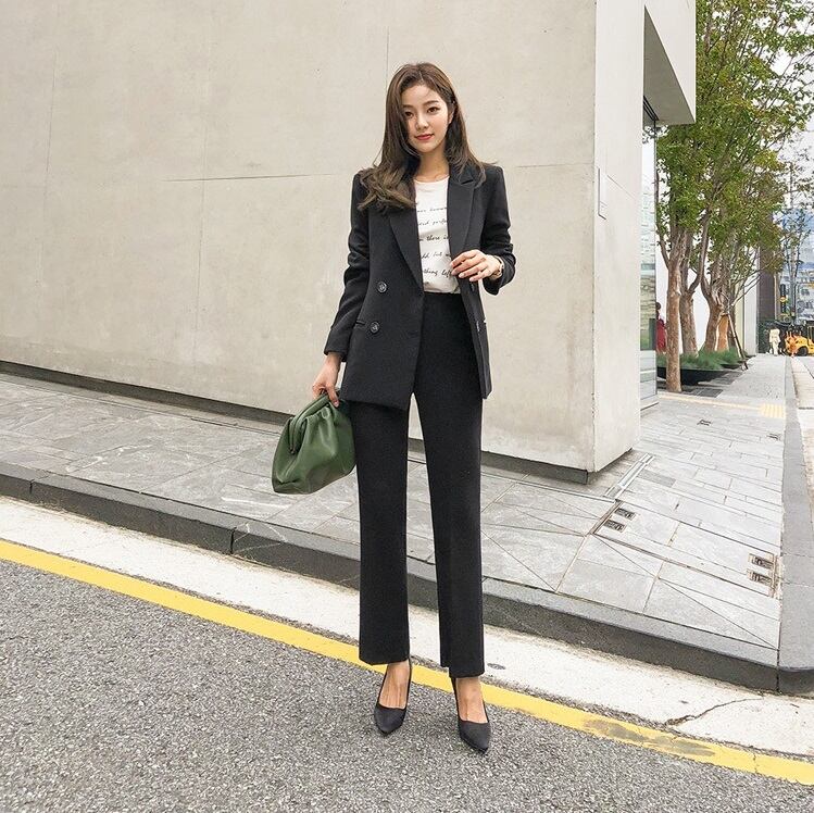 秋冬のオフィスコーデにぴったりなジャケットとパンツのセットアップです。