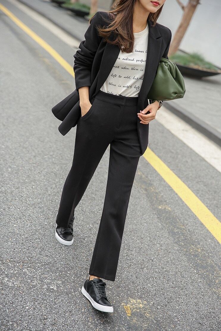 パンプスだけでなく、スニーカーを合わせても絶妙な抜け感がプラスされてオシャレです。