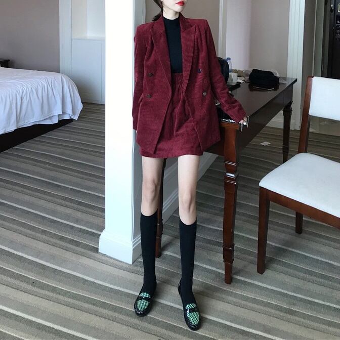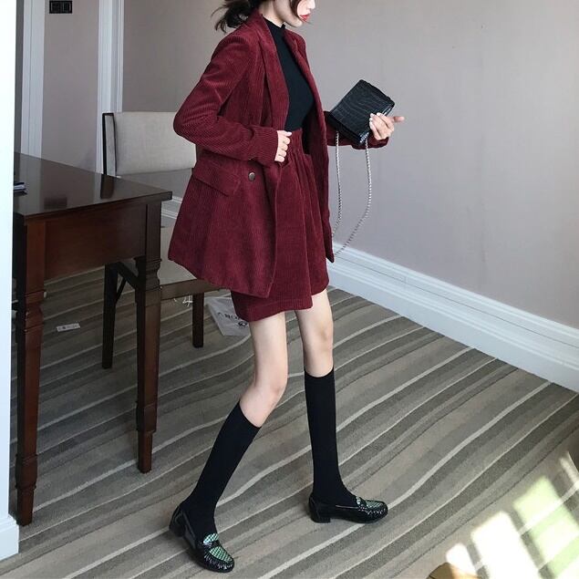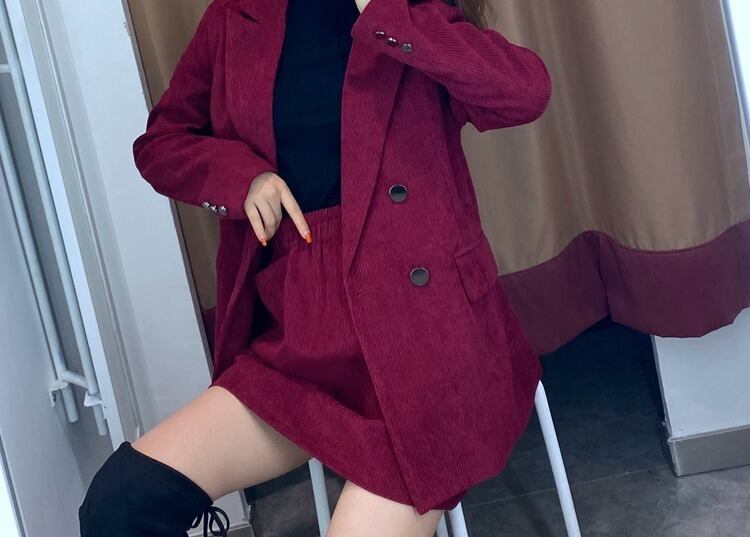大人可愛いコーデュロイのジャケット&スカートのセットアップです。