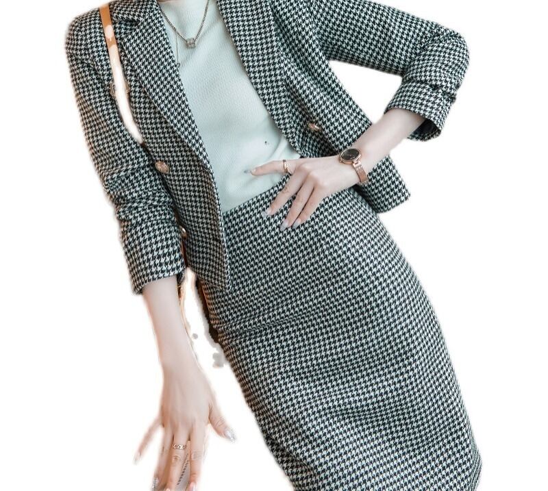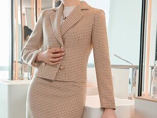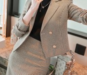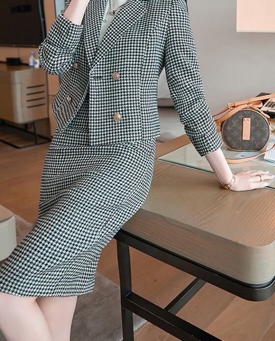 大人可愛い千鳥格子柄ジャケット&スカートのセットアップです。