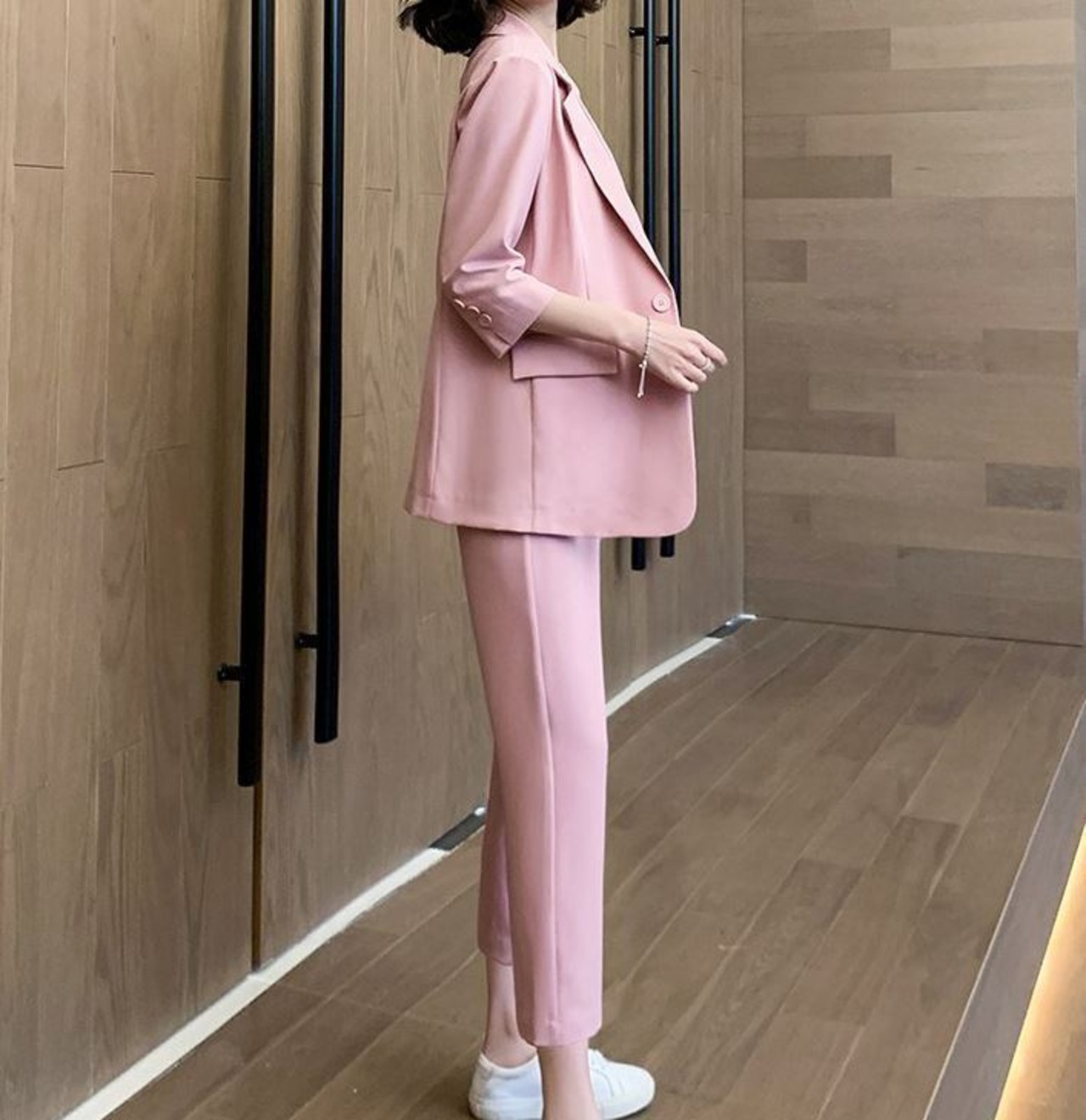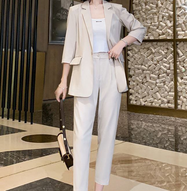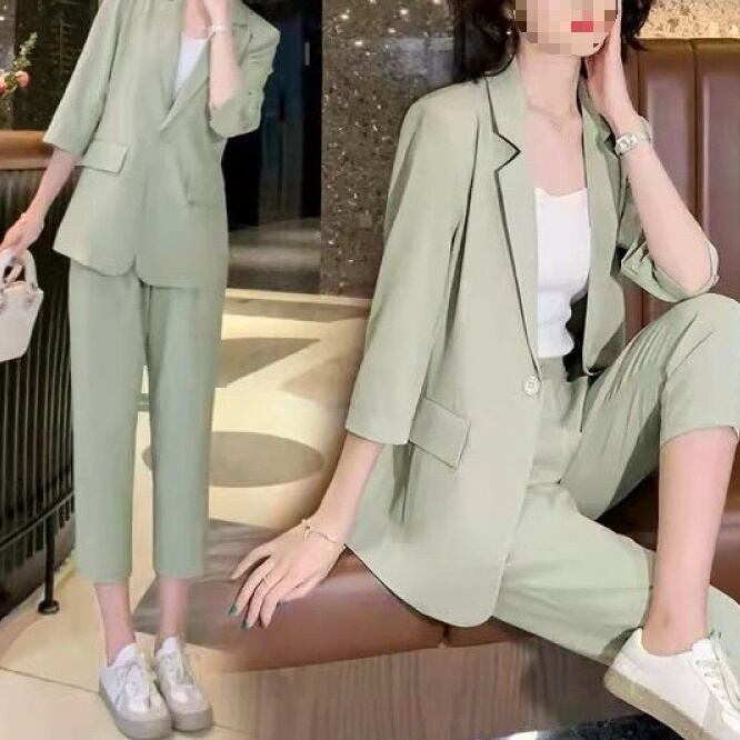 セットアップ スーツ パンツ ボトムス ジャケット シングルブレスト 長袖 ロング アンクル丈 ワンタック ハイウエスト クロップパンツ ストレート 襟付き Vネック レトロ ビッグシルエット 韓国 スリム タイト きれいめ 高品質 大人 上品 ストレートパンツ フォーマル 秋 オータム 冬 ウィンター レディース 女性用 20代 30代 S M L XL 黒 ブラック 緑 大人カラー 秋カラー フェミニン オフィス プロフェッショナル エレガント OL ピンク ベージュ ブラック グリーン