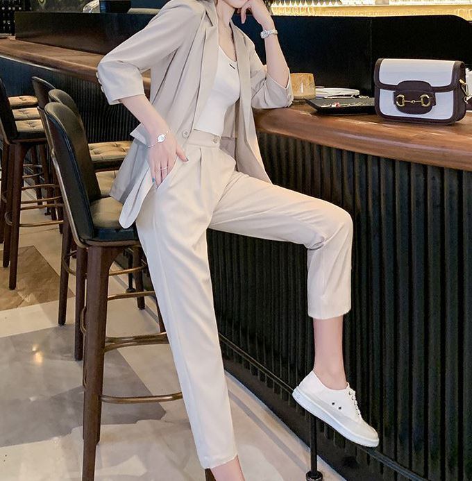 タック入りの美脚効果抜群のアンクルパンツのの2点セットです。